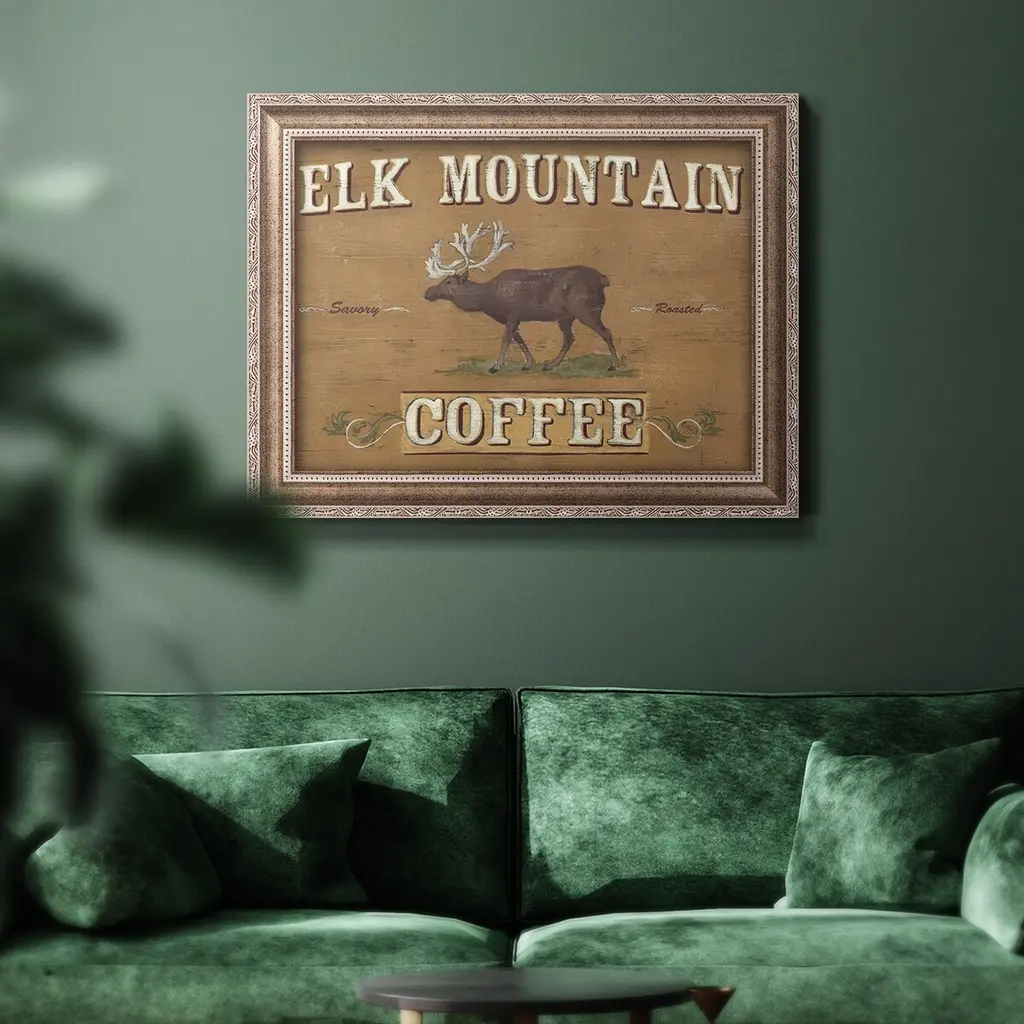 Lodge Coffee II Premium Framed Canvas- Ready to Hang A Premium Framed Canvas created to last. Framed in distressed wood and available in an array of sizes and colors Featuring a beveled a solid wood stretcher bar, each piece comes ready to hand 3 SIZES AVAILABLE 16''X20'' - Overall Size 18'X27'' - Overall Size 24''x36'' - Overall Size Each piece is made to order. Each piece comes with hanging hardware. Made in the USA Ready to Hang Giclee Paper Print Acrylic Glass Beveled Matt Board