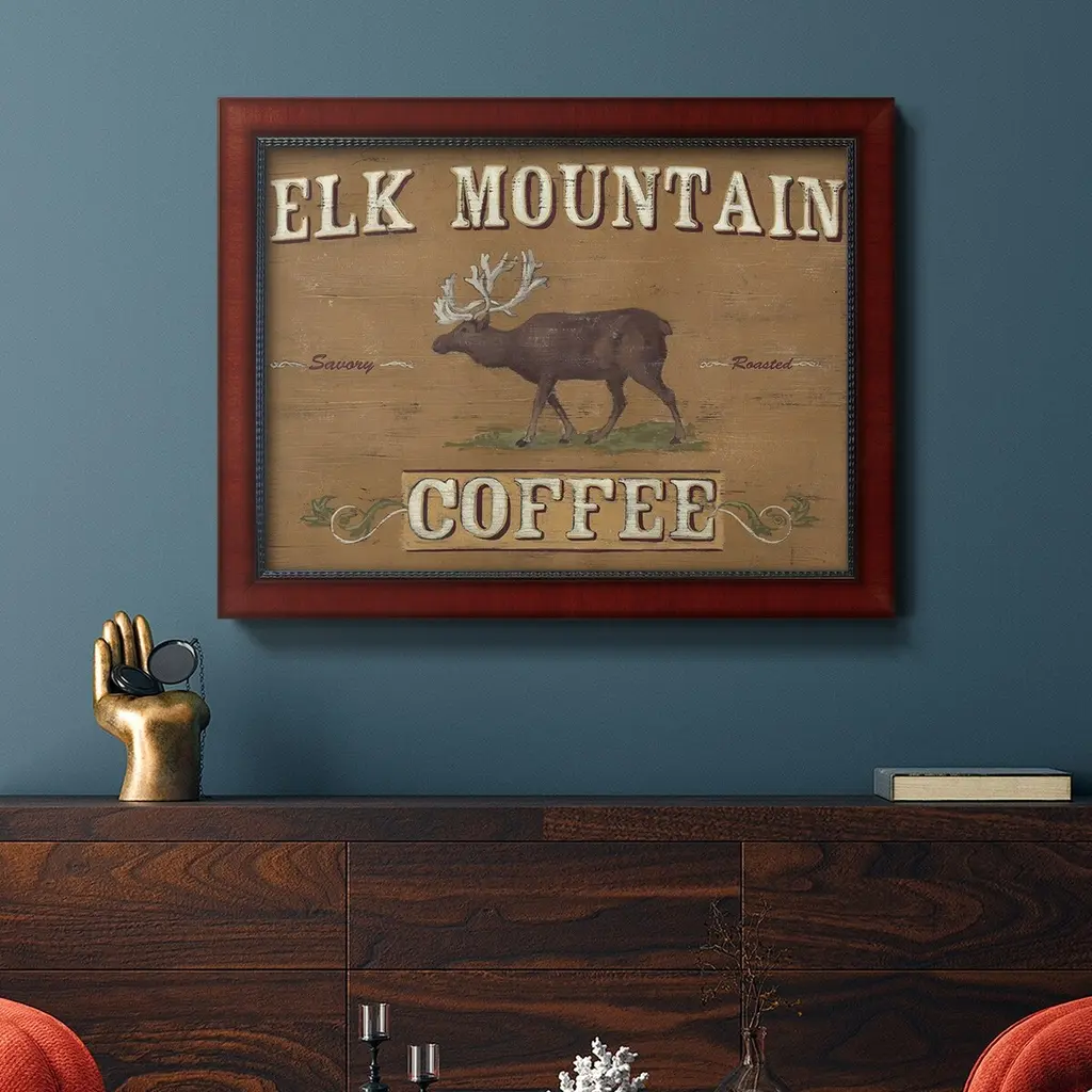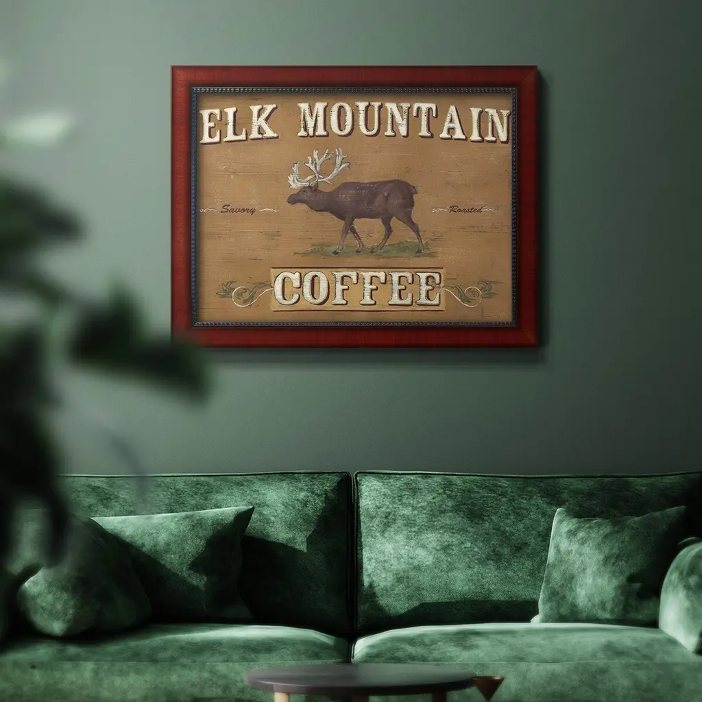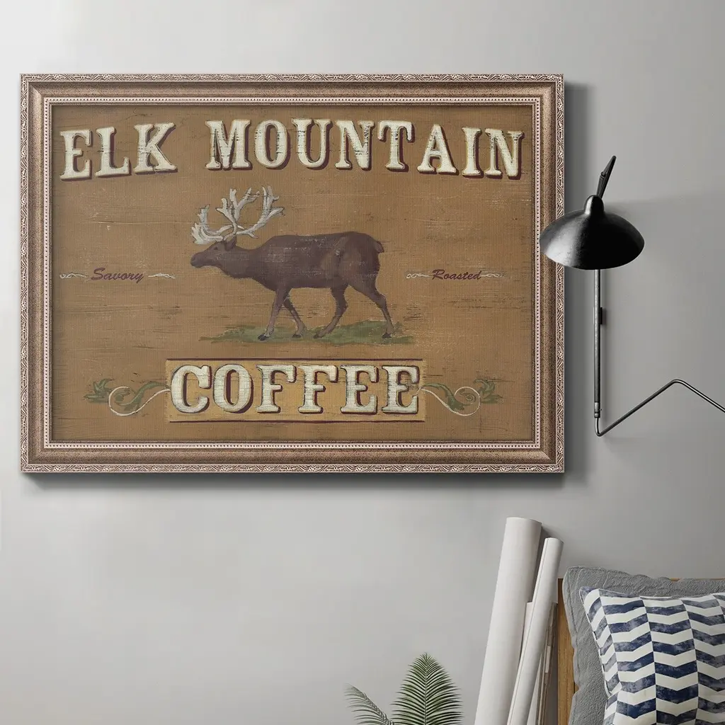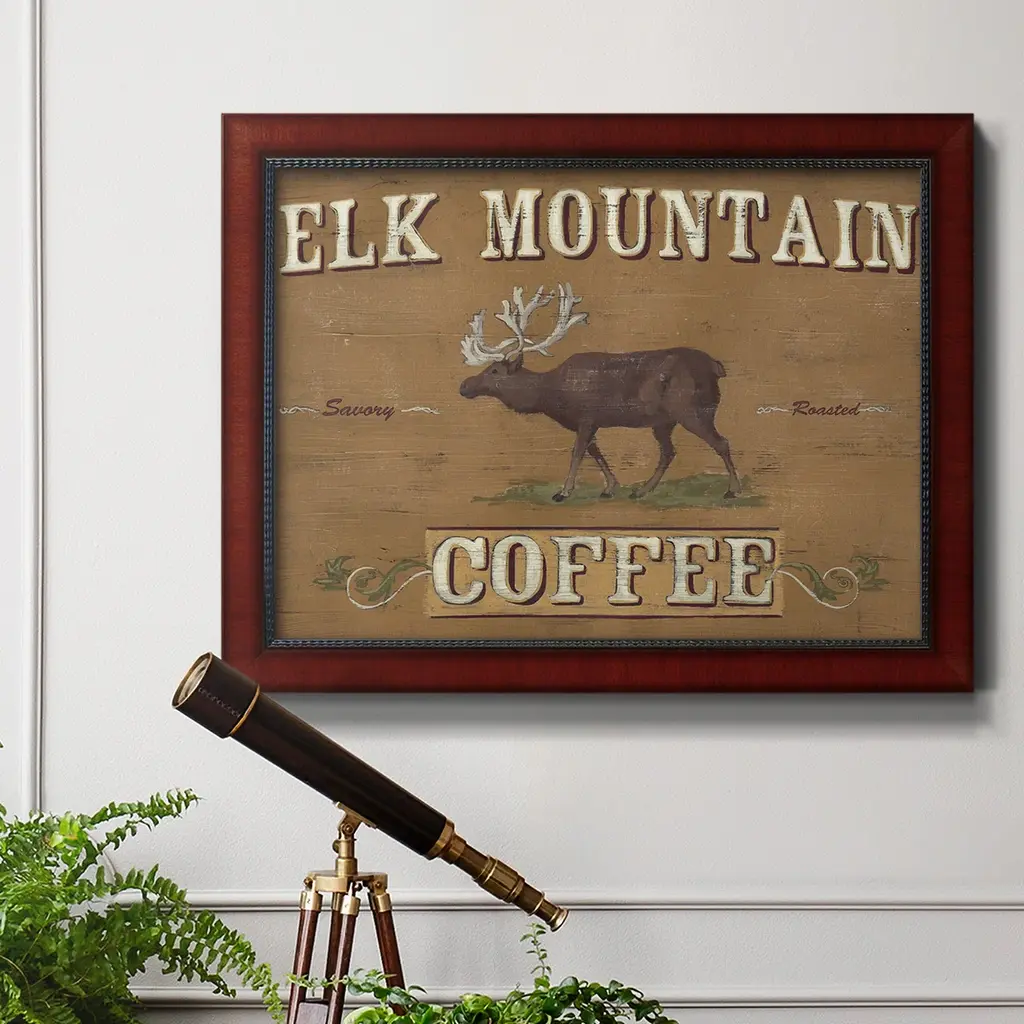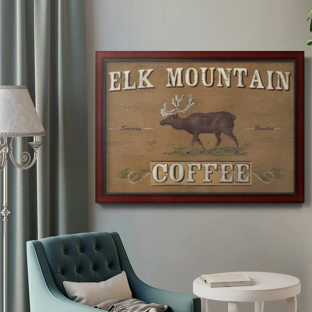Lodge Coffee II Premium Framed Canvas- Ready to Hang A Premium Framed Canvas created to last. Framed in distressed wood and available in an array of sizes and colors Featuring a beveled a solid wood stretcher bar, each piece comes ready to hand 3 SIZES AVAILABLE 16''X20'' - Overall Size 18'X27'' - Overall Size 24''x36'' - Overall Size Each piece is made to order. Each piece comes with hanging hardware. Made in the USA Ready to Hang Giclee Paper Print Acrylic Glass Beveled Matt Board