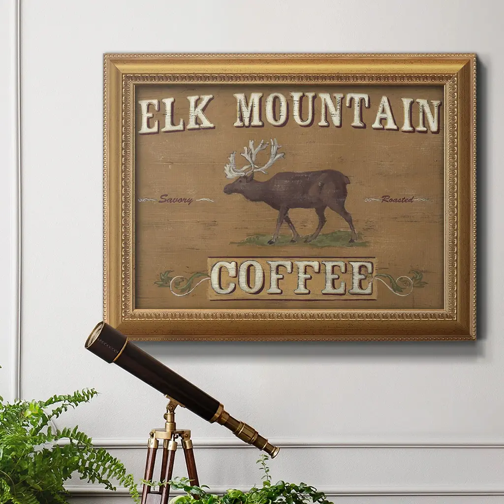 Lodge Coffee II Premium Framed Canvas- Ready to Hang A Premium Framed Canvas created to last. Framed in distressed wood and available in an array of sizes and colors Featuring a beveled a solid wood stretcher bar, each piece comes ready to hand 3 SIZES AVAILABLE 16''X20'' - Overall Size 18'X27'' - Overall Size 24''x36'' - Overall Size Each piece is made to order. Each piece comes with hanging hardware. Made in the USA Ready to Hang Giclee Paper Print Acrylic Glass Beveled Matt Board