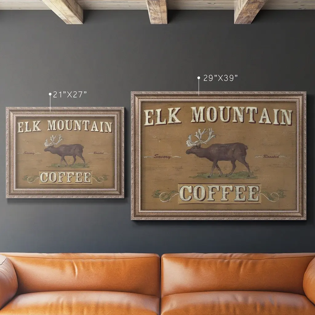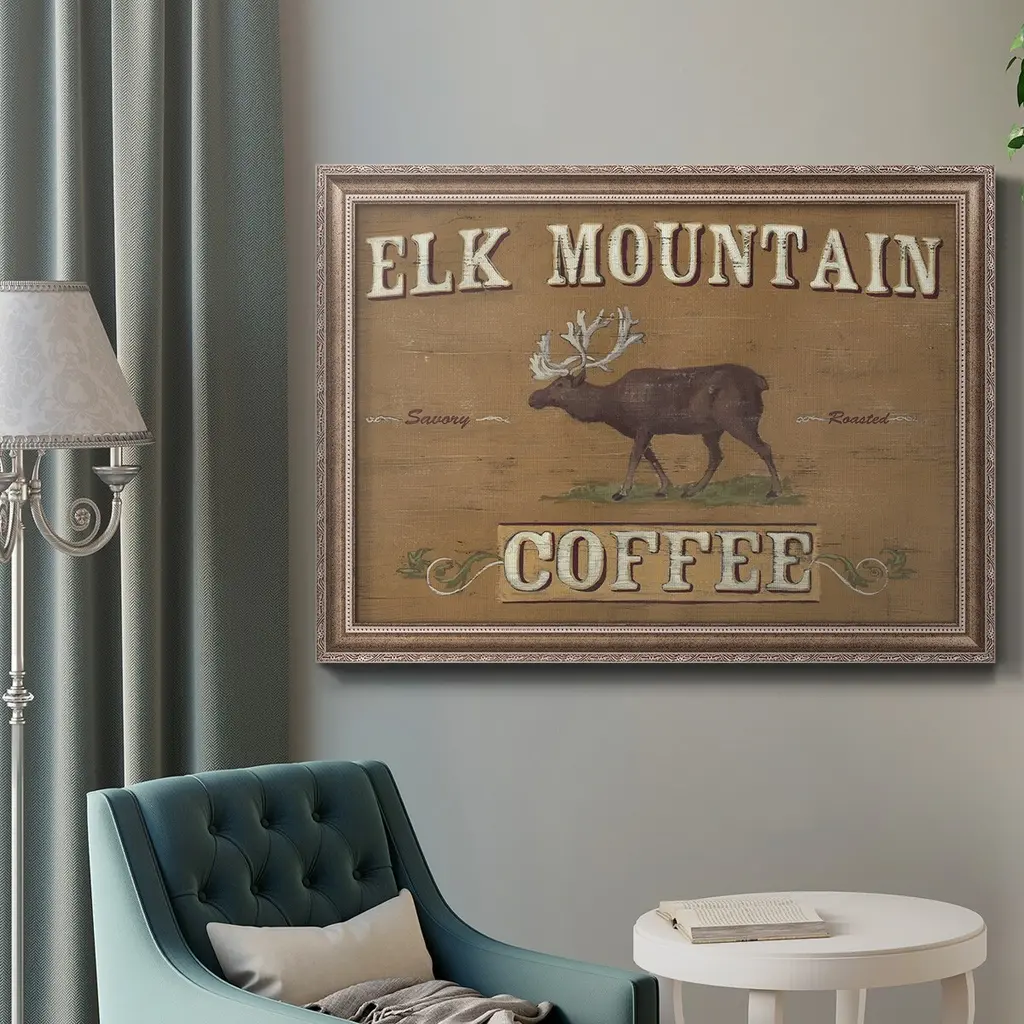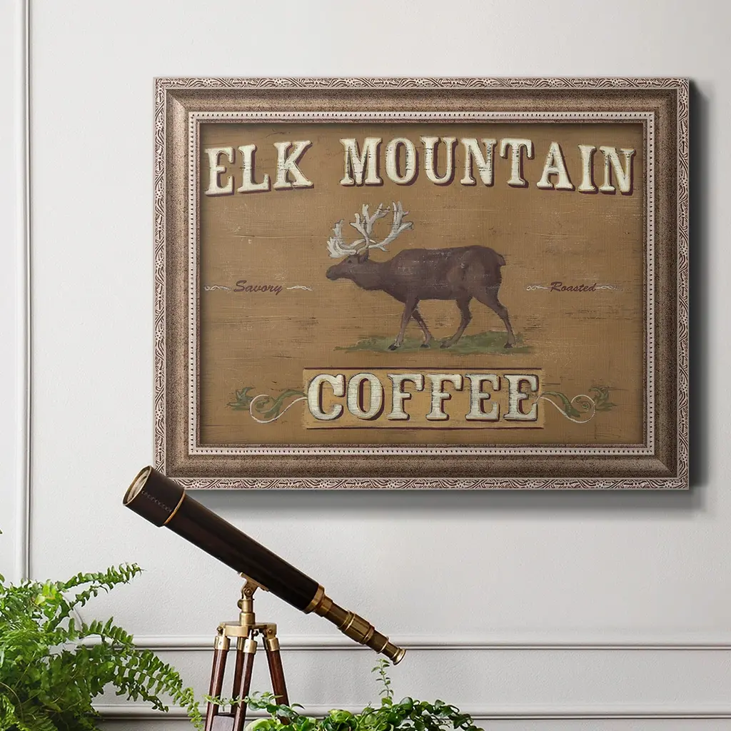 Lodge Coffee II Premium Framed Canvas- Ready to Hang A Premium Framed Canvas created to last. Framed in distressed wood and available in an array of sizes and colors Featuring a beveled a solid wood stretcher bar, each piece comes ready to hand 3 SIZES AVAILABLE 16''X20'' - Overall Size 18'X27'' - Overall Size 24''x36'' - Overall Size Each piece is made to order. Each piece comes with hanging hardware. Made in the USA Ready to Hang Giclee Paper Print Acrylic Glass Beveled Matt Board