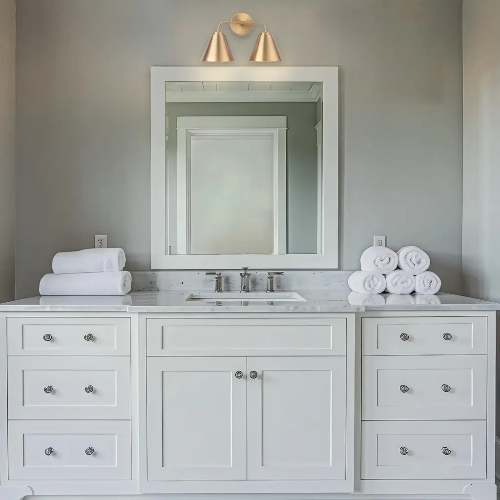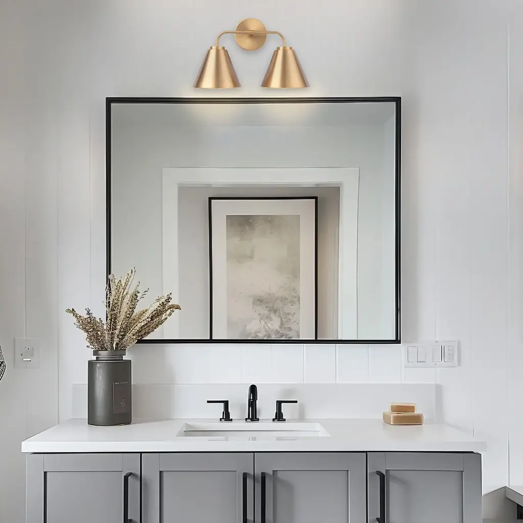 The Loft Lantern Modern 2-Light Vanity Light is the perfect addition to any modern bathroom. Made from high-quality steel, this vanity light is durable and built to last.【Stylish Design】 : The lantern-style design of this vanity light will add a touch of sophistication to any bathroom.【Two Lights】 : With two lights, this fixture provides ample lighting for all grooming needs.【Durable Construction】 : Made from steel and metal shades, this vanity light is built to withstand the wear and tear of daily use.【Safety Rated】 : This fixture has been ETL safety rated, ensuring it meets all necessary safety standards.【Damp-Rated】 : This modern vanity lamp has been damp-rated moisture which means it can be used safely in damp environments such as bathrooms without being damaged.