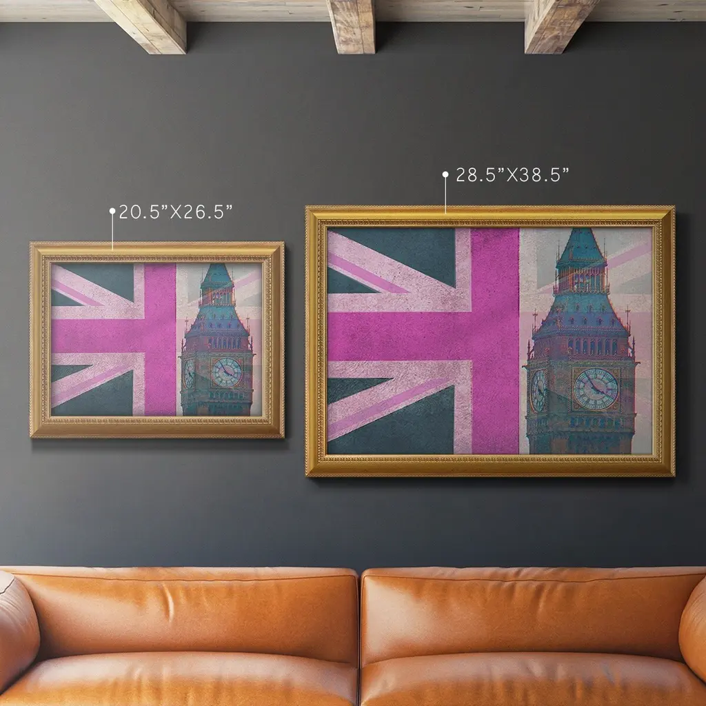 London Calling Premium Framed Canvas- Ready to Hang A Premium Framed Canvas created to last. Framed in distressed wood and available in an array of sizes and colors Featuring a beveled a solid wood stretcher bar, each piece comes ready to hand 3 SIZES AVAILABLE 16''X20'' - Overall Size 18'X27'' - Overall Size 24''x36'' - Overall Size Each piece is made to order. Each piece comes with hanging hardware. Made in the USA Ready to Hang Giclee Paper Print Acrylic Glass Beveled Matt Board