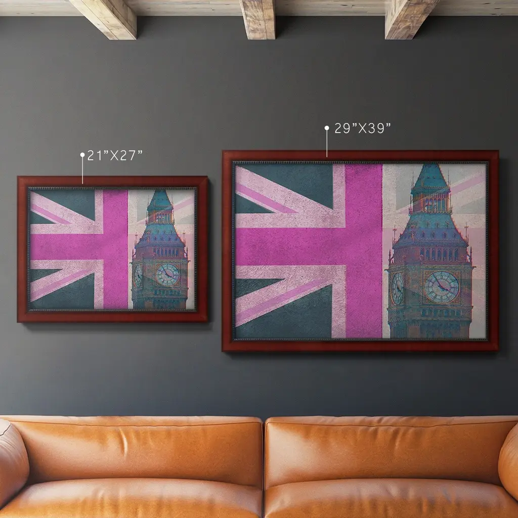 London Calling Premium Framed Canvas- Ready to Hang A Premium Framed Canvas created to last. Framed in distressed wood and available in an array of sizes and colors Featuring a beveled a solid wood stretcher bar, each piece comes ready to hand 3 SIZES AVAILABLE 16''X20'' - Overall Size 18'X27'' - Overall Size 24''x36'' - Overall Size Each piece is made to order. Each piece comes with hanging hardware. Made in the USA Ready to Hang Giclee Paper Print Acrylic Glass Beveled Matt Board