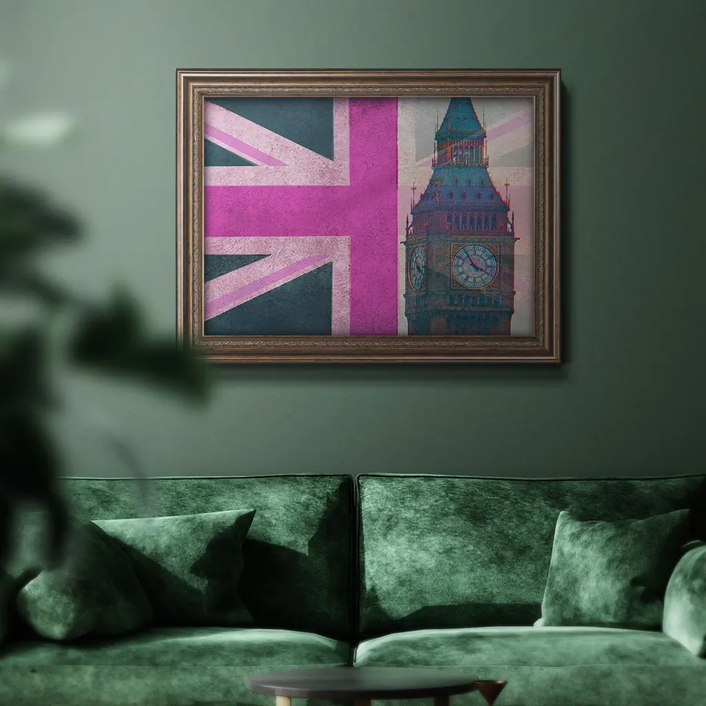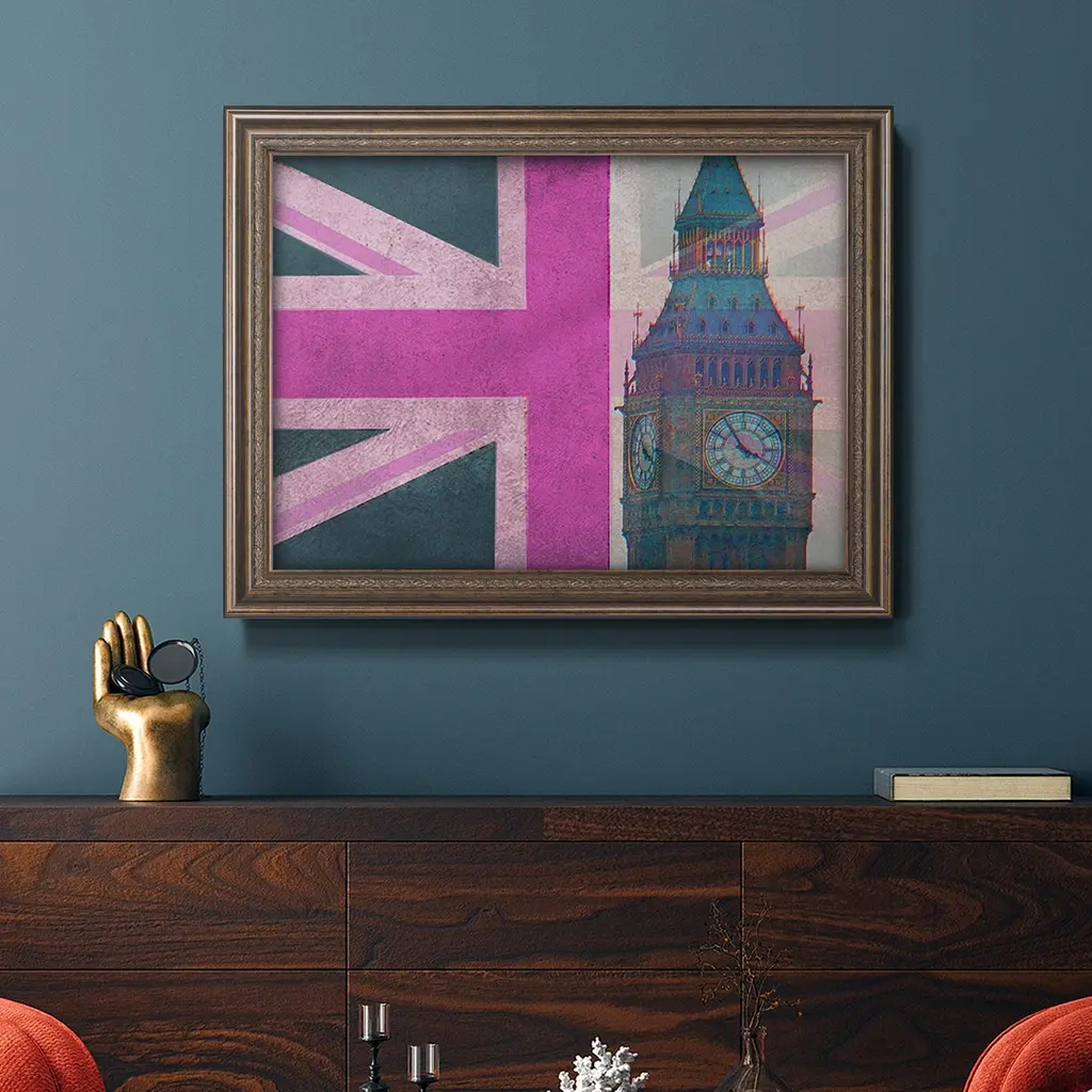 London Calling Premium Framed Canvas- Ready to Hang A Premium Framed Canvas created to last. Framed in distressed wood and available in an array of sizes and colors Featuring a beveled a solid wood stretcher bar, each piece comes ready to hand 3 SIZES AVAILABLE 16''X20'' - Overall Size 18'X27'' - Overall Size 24''x36'' - Overall Size Each piece is made to order. Each piece comes with hanging hardware. Made in the USA Ready to Hang Giclee Paper Print Acrylic Glass Beveled Matt Board