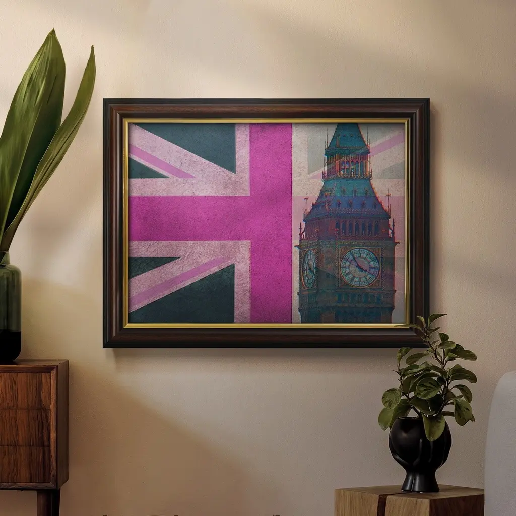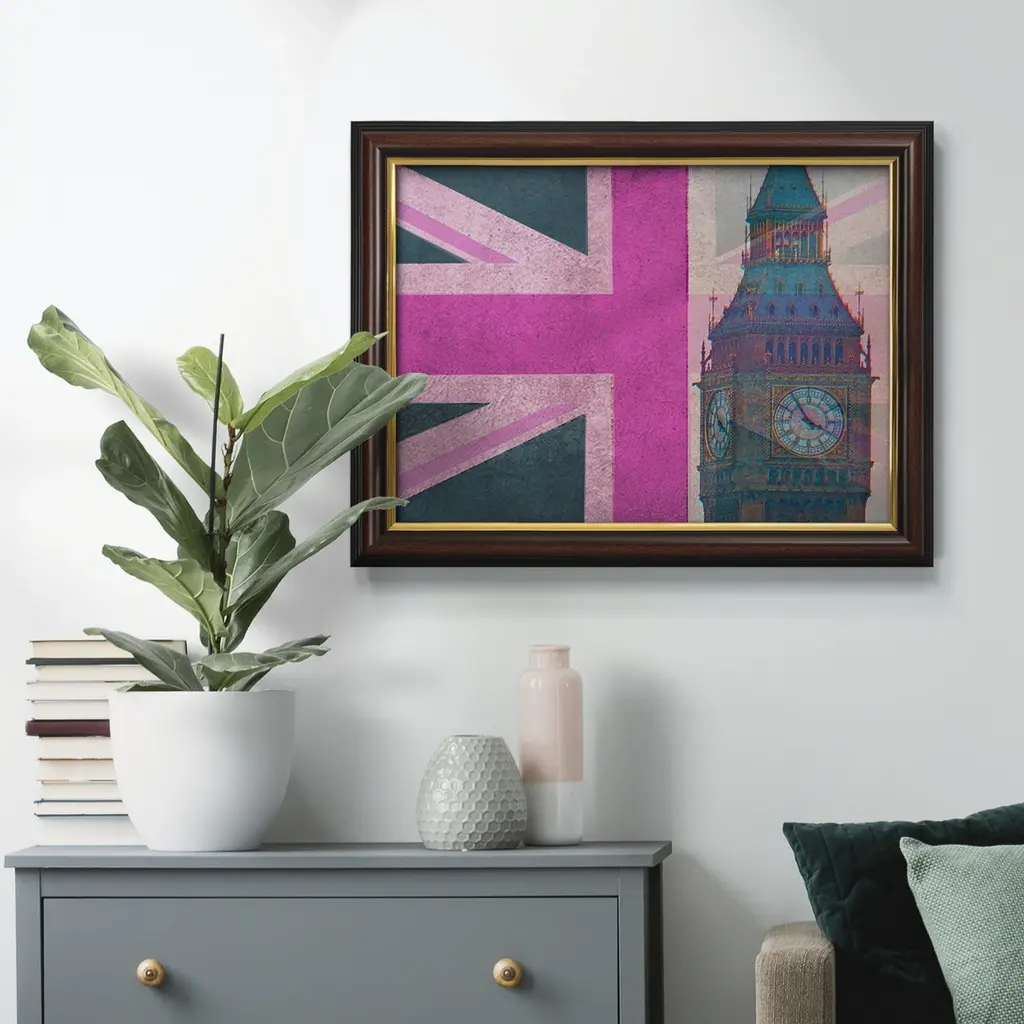 London Calling Premium Framed Canvas- Ready to Hang A Premium Framed Canvas created to last. Framed in distressed wood and available in an array of sizes and colors Featuring a beveled a solid wood stretcher bar, each piece comes ready to hand 3 SIZES AVAILABLE 16''X20'' - Overall Size 18'X27'' - Overall Size 24''x36'' - Overall Size Each piece is made to order. Each piece comes with hanging hardware. Made in the USA Ready to Hang Giclee Paper Print Acrylic Glass Beveled Matt Board