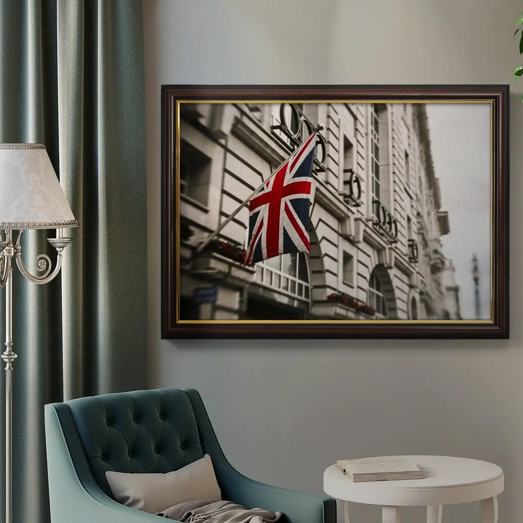 London Scene II Premium Framed Canvas- Ready to Hang A Premium Framed Canvas created to last. Framed in distressed wood and available in an array of sizes and colors Featuring a beveled a solid wood stretcher bar, each piece comes ready to hand 3 SIZES AVAILABLE 16''X20'' - Overall Size 18'X27'' - Overall Size 24''x36'' - Overall Size Each piece is made to order. Each piece comes with hanging hardware. Made in the USA Ready to Hang Giclee Paper Print Acrylic Glass Beveled Matt Board