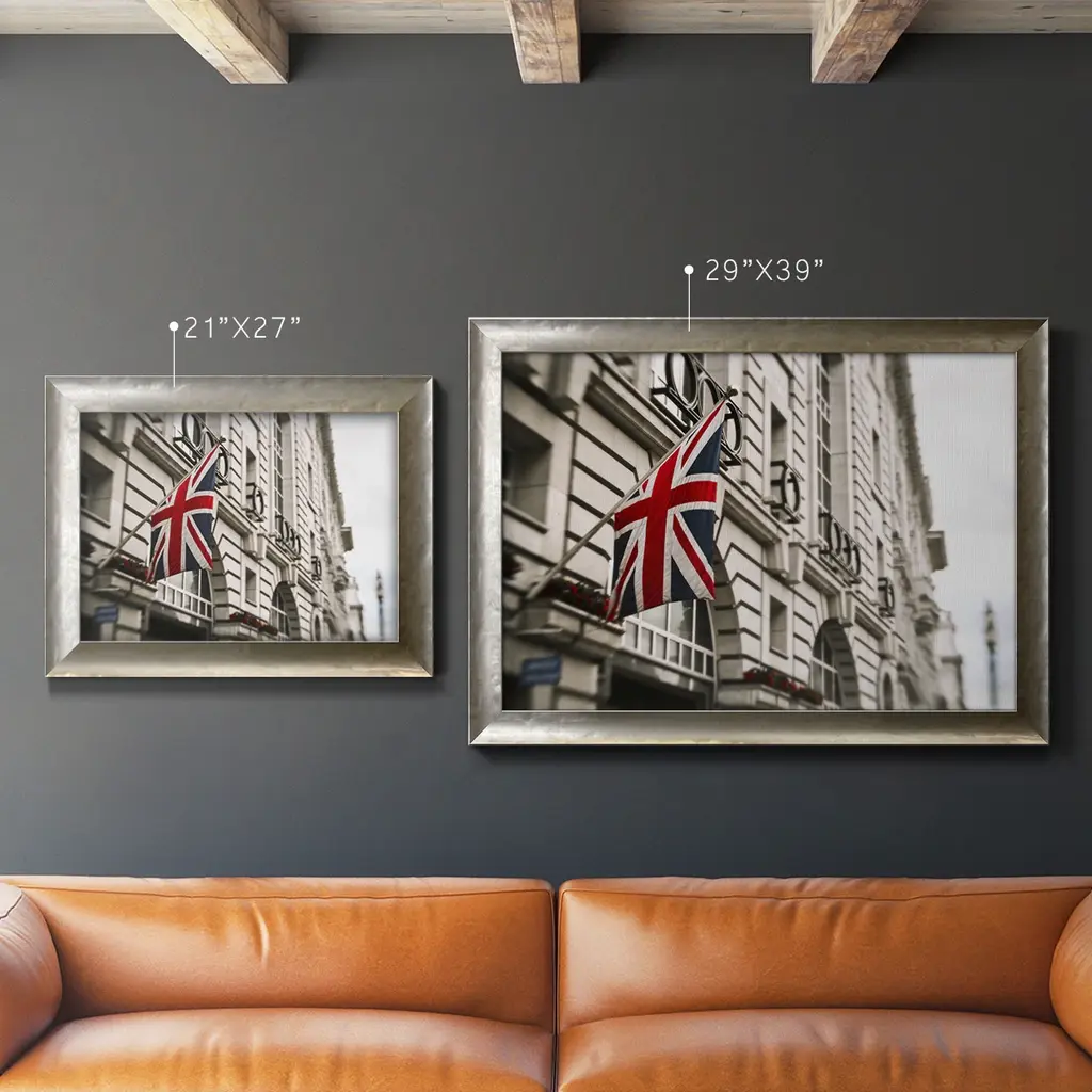 London Scene II Premium Framed Canvas- Ready to Hang A Premium Framed Canvas created to last. Framed in distressed wood and available in an array of sizes and colors Featuring a beveled a solid wood stretcher bar, each piece comes ready to hand 3 SIZES AVAILABLE 16''X20'' - Overall Size 18'X27'' - Overall Size 24''x36'' - Overall Size Each piece is made to order. Each piece comes with hanging hardware. Made in the USA Ready to Hang Giclee Paper Print Acrylic Glass Beveled Matt Board