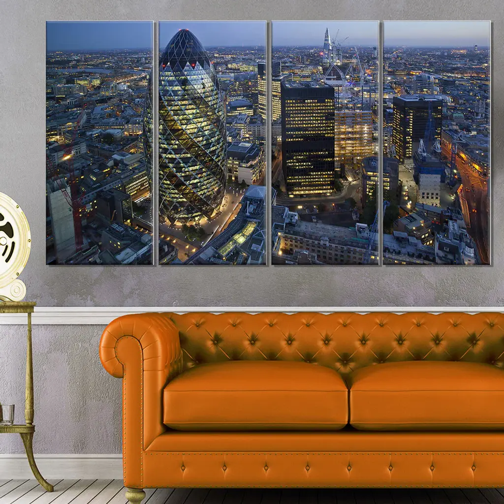 "London Skyline At Sunset" Canvas Print, 4 Panels