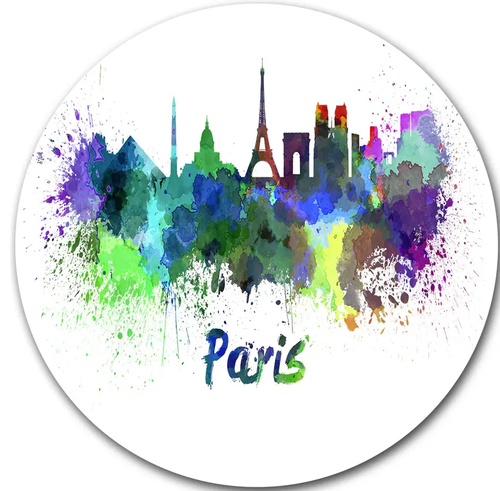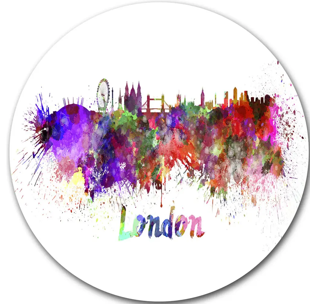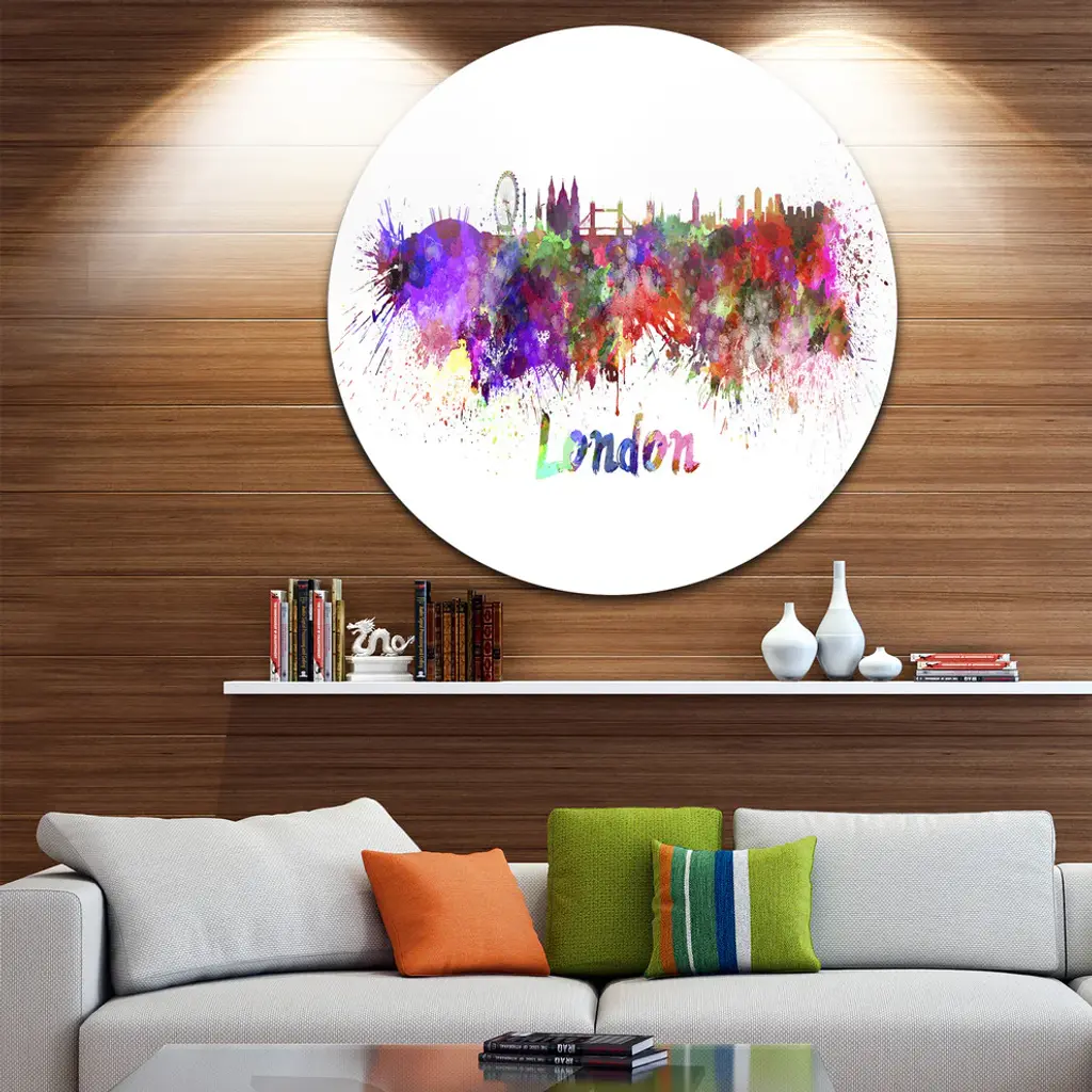 Bring Contemporary Abstraction to your home with this large Circle Metal wall art. This London Skyline Metal Artwork makes it the focal point of any room or office. - White Gloss Coating ensures colors are extra vibrant with light reflection.- Aluminum grade Sheet Metal with 1 inch mounting frame on the back giving the illusion that the artwork is floating on the wall..- Mounting Brackets are included along with instructions.- High Quality Digital images are created directly into a glossy aluminum panel producing a stunning and captivating print into the glossy finish of the metal.- Water, Fire and Scratch resistant HD Aluminum panels.- Looks better than any photo paper and guaranteed to last at least 20 years- Easy to clean with a microfiber cloth. Colors are far superior to regular Canvas Art. - Easy to Hang