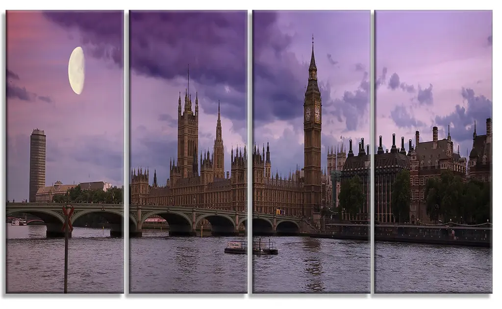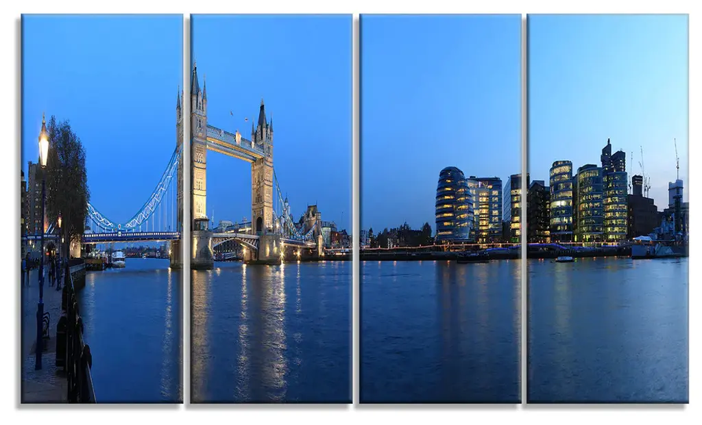 "London Tower Bridge In Blue" Canvas Print, 4 Panels