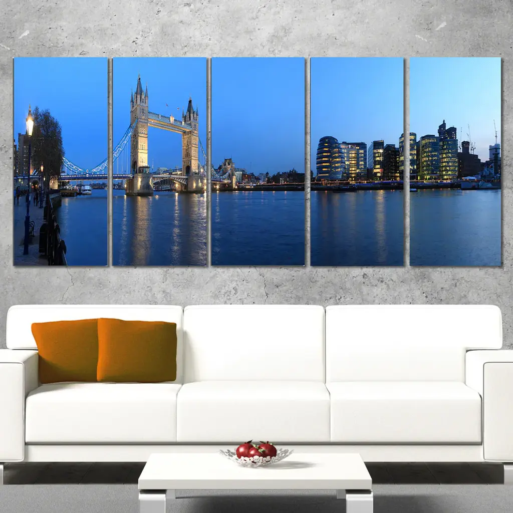 "London Tower Bridge In Blue" Canvas Print, 5 Panels