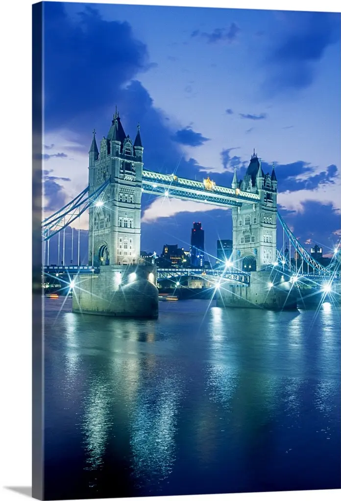The London Tower Bridge in Blue canvas art print is sure to make an impression on anyone who sees it. This artwork is gallery wrapped around a 1-inch solid wood frame and arrives carefully packaged and entirely ready to hang on the wall. Design Art only uses the highest resolution and pigments to ensure a crisp colorful print that is never faded or pixelated. This artwork is sure to be a conversation starter in any home or office.