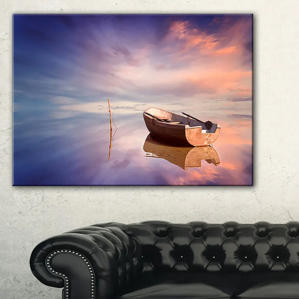 The Lonely Boat in Colorful Sea canvas art print is sure to make an impression on anyone who sees it. This artwork is gallery wrapped around a 1-inch solid wood frame and arrives carefully packaged and entirely ready to hang on the wall. Design Art only uses the highest resolution and pigments to ensure a crisp colorful print that is never faded or pixelated. This artwork is sure to be a conversation starter in any home or office.