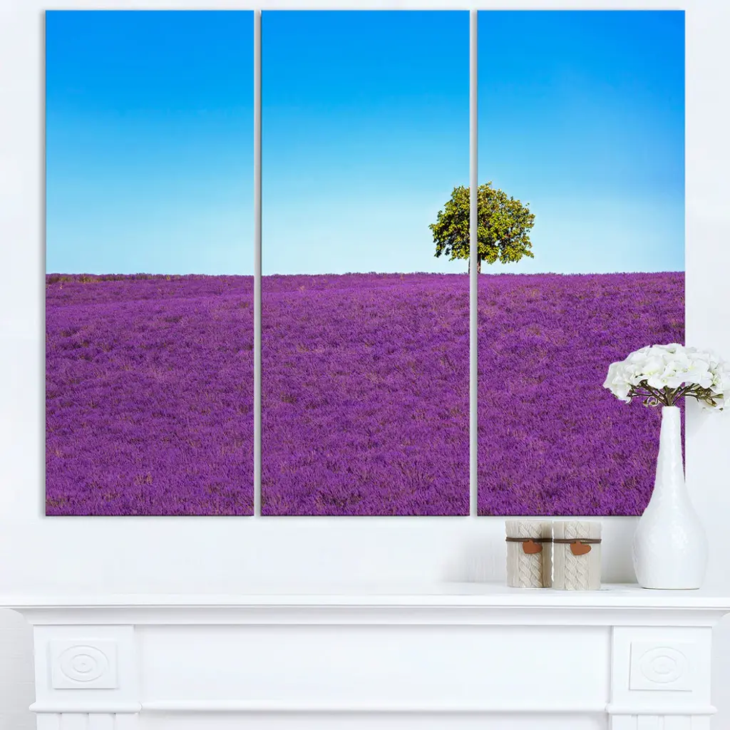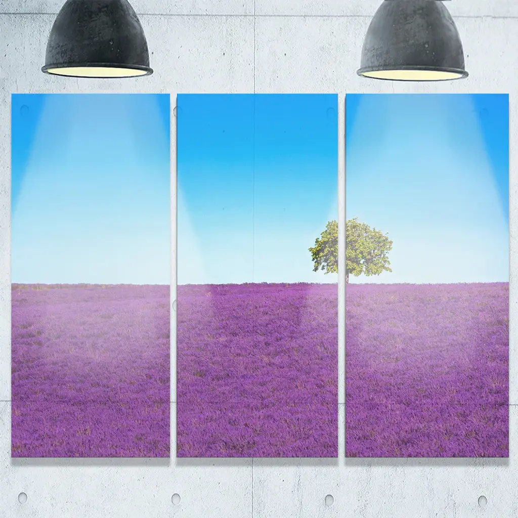 "Lonely Tree In Lavender Field" Oversized Metal Wall Art, 3 Panels, 36"x28"