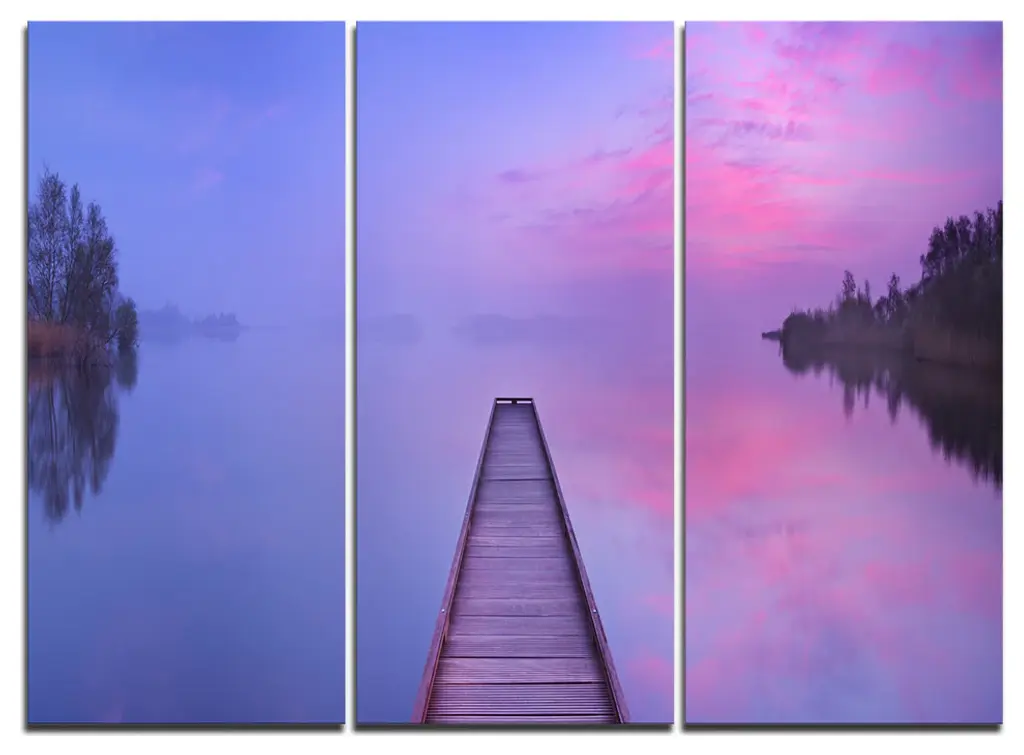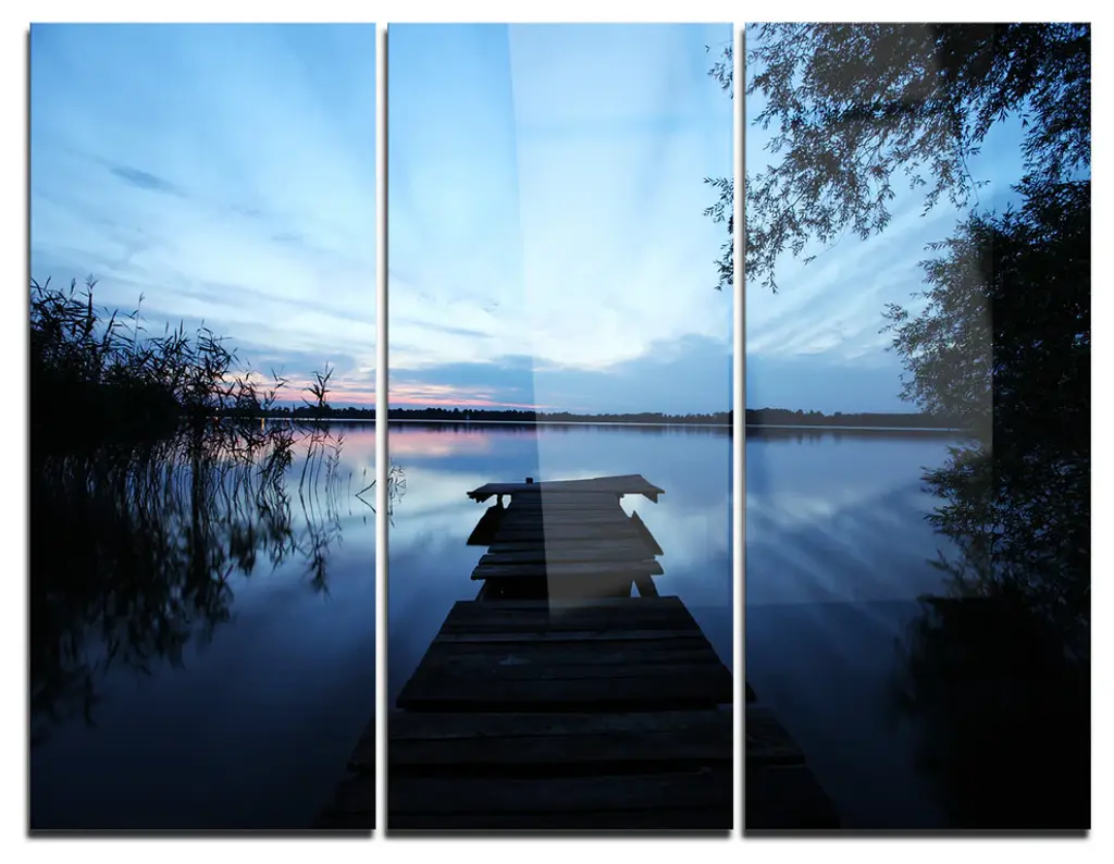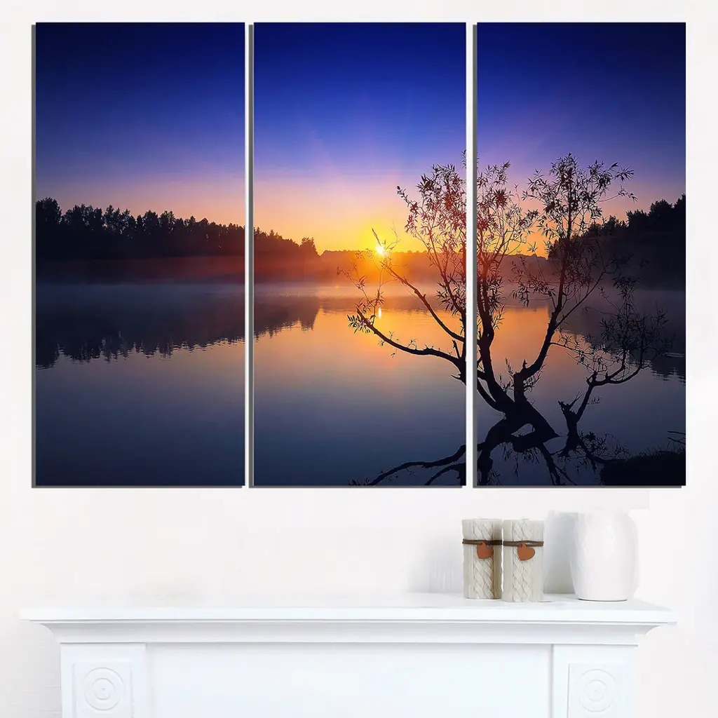"Lonely Tree In Pond In Blue" Metal Landscape, 3 Panels, 36"x28"