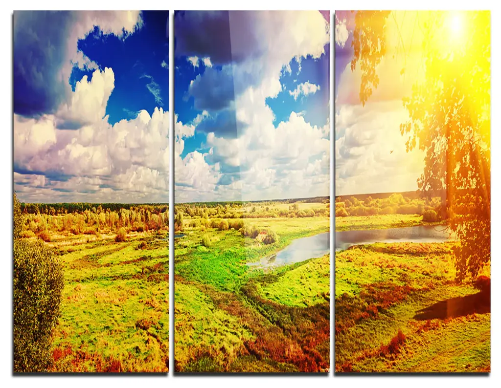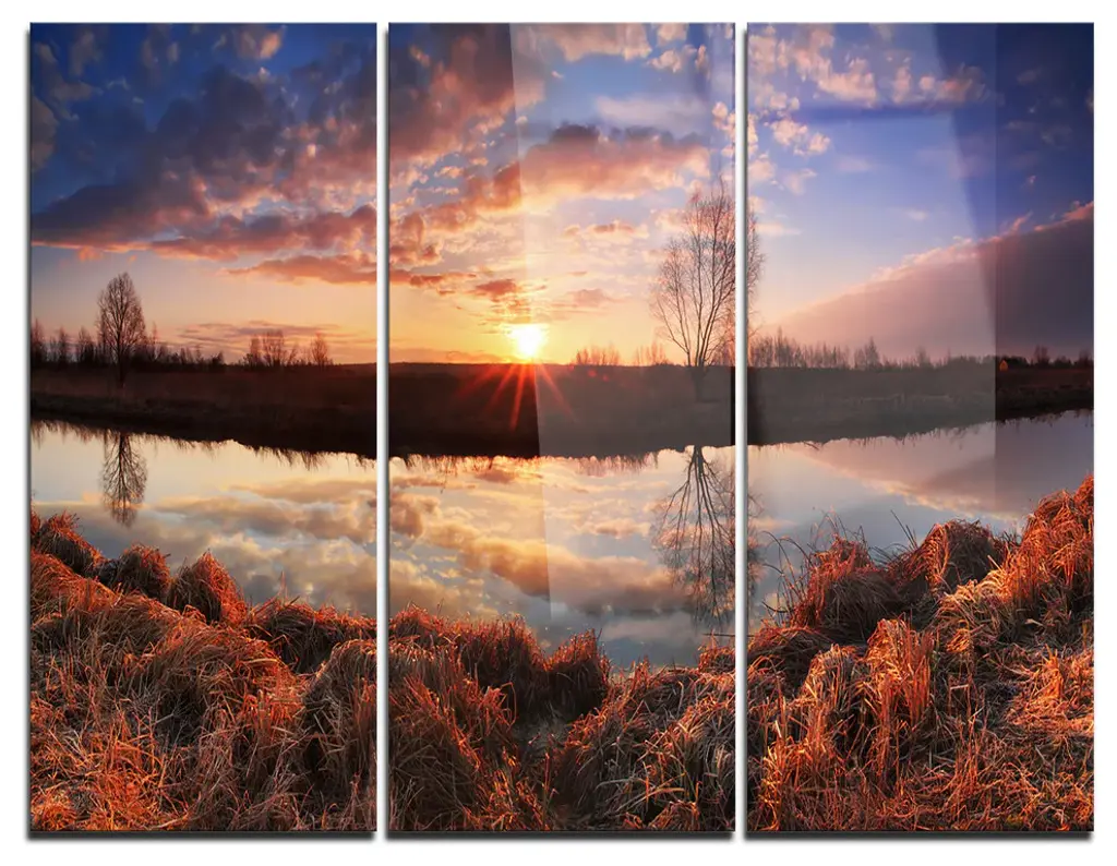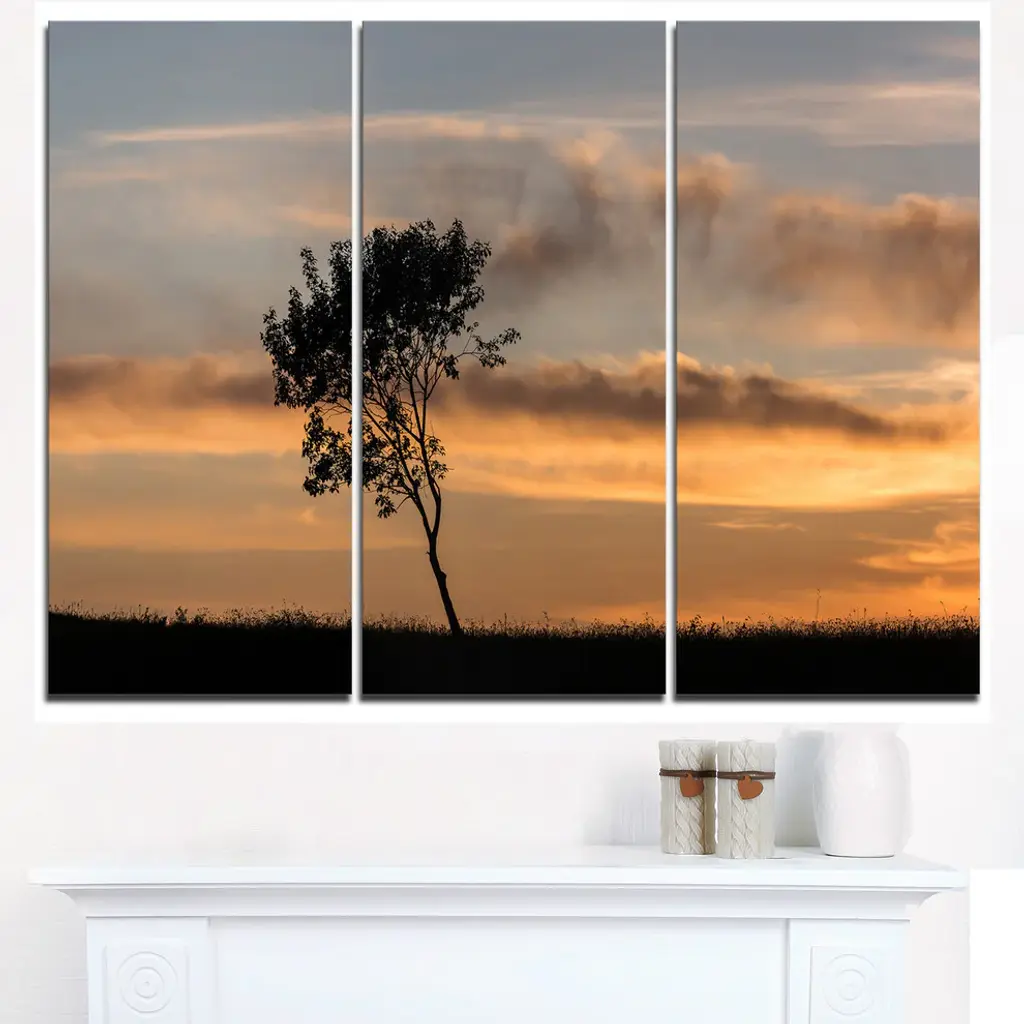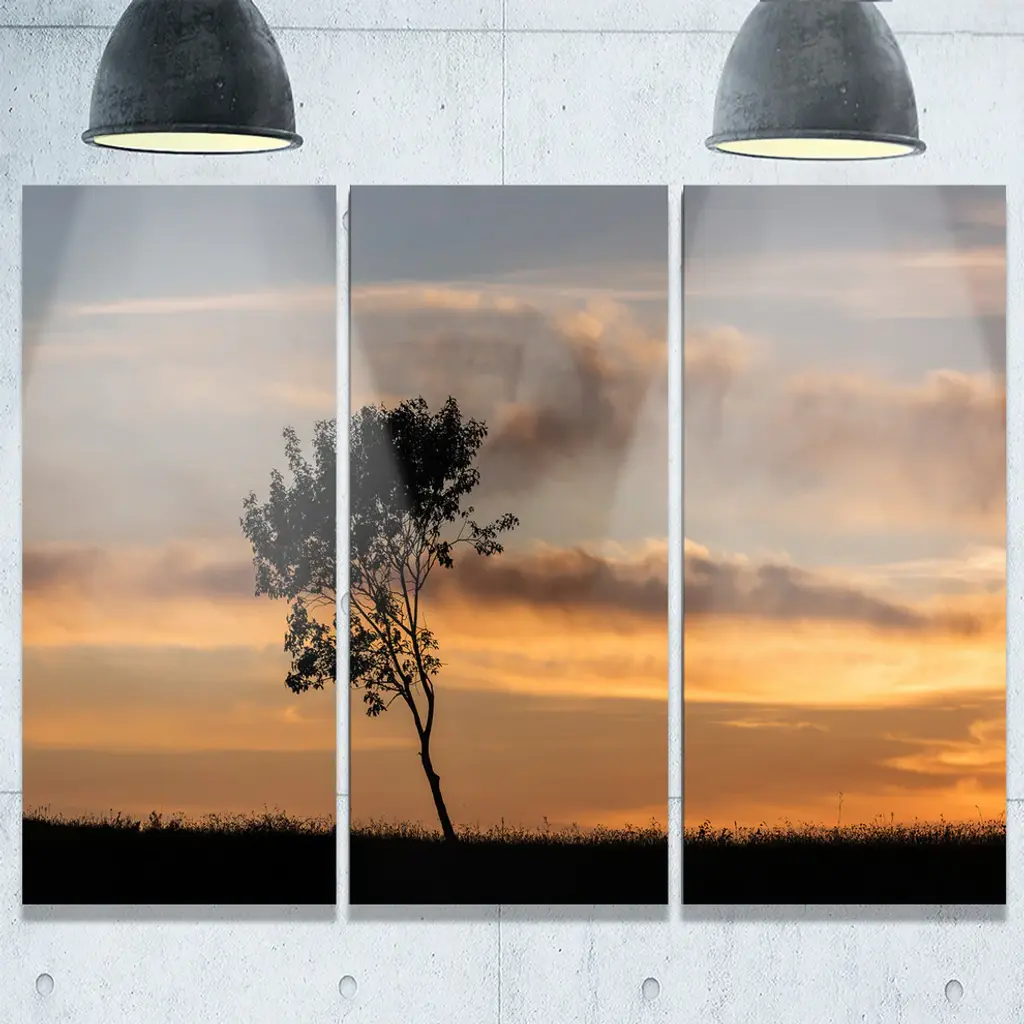"Lonely Tree Silhouette Leftwards" Metal Wall Art, 3 Panels, 36"x28"