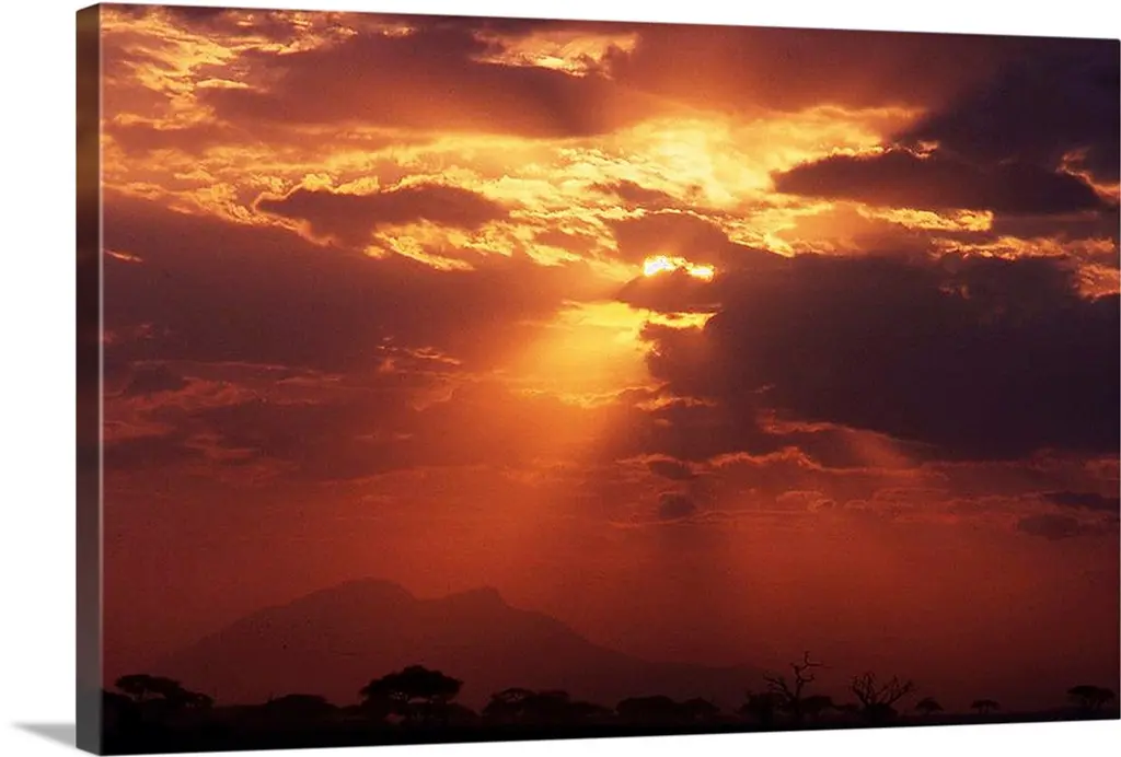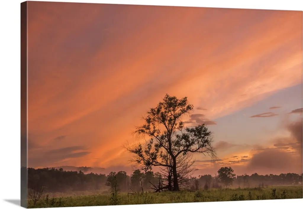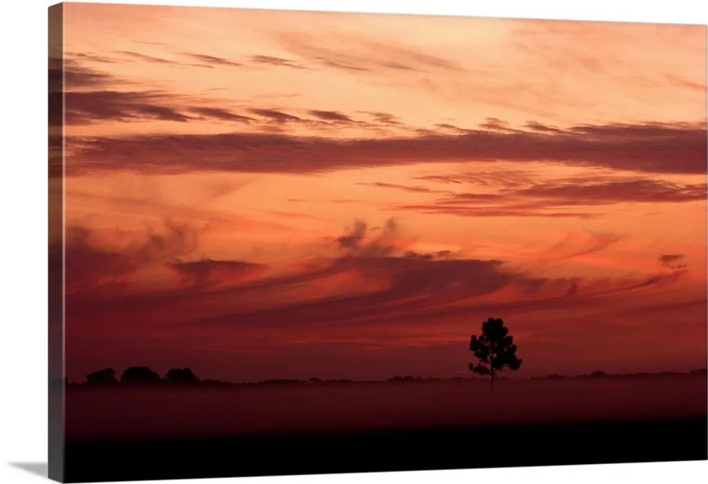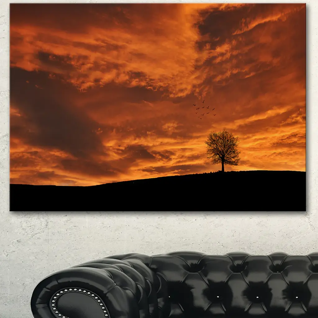 Lonely Tree Under Brown Sky, Landscape Canvas Art Print, 60"x28"