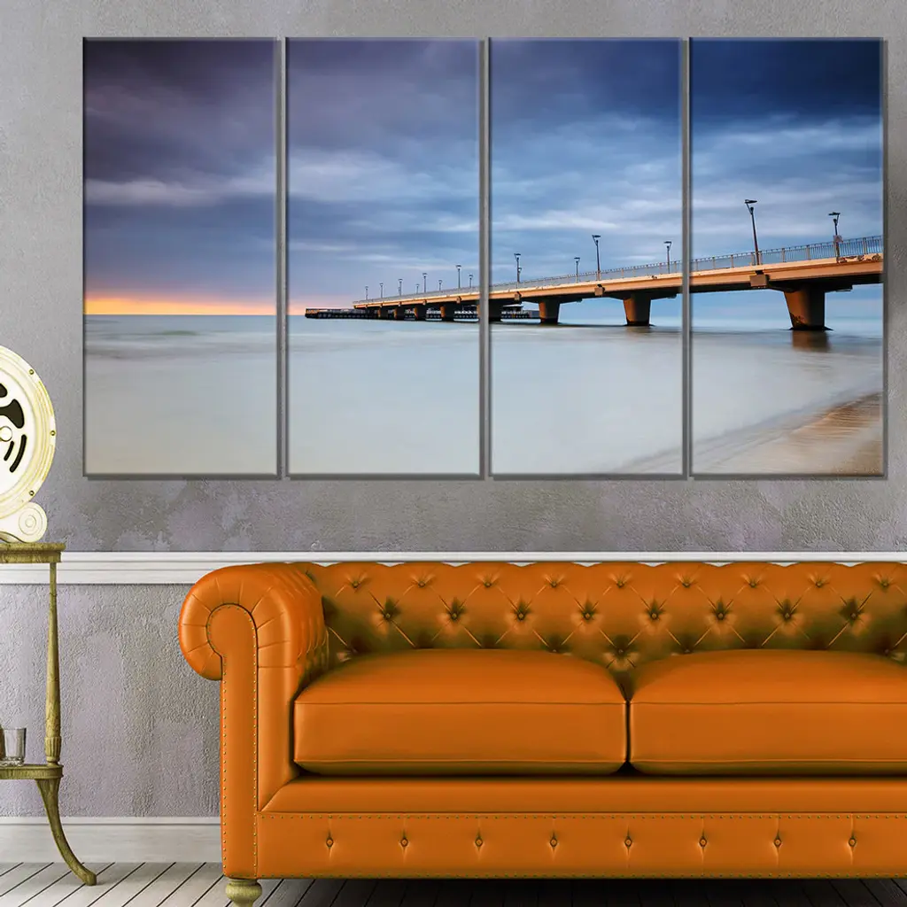"Long Concrete Pier Into Sea" Canvas Print, 4 Panels