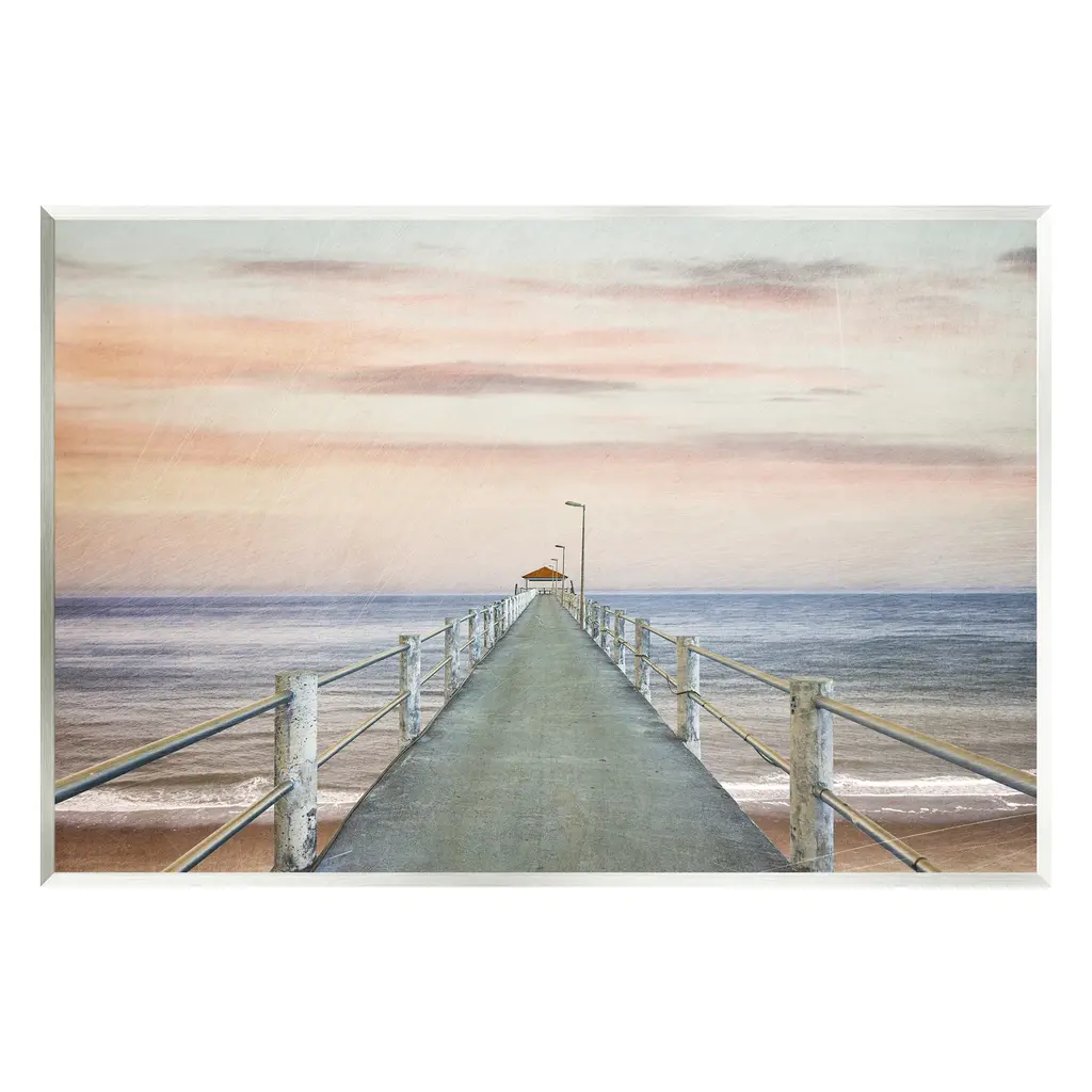 Bring Contemporary Abstraction to your home with this large Circle Metal wall art. This Long Concrete Pier into Sea Metal Artwork makes it the focal point of any room or office. - White Gloss Coating ensures colors are extra vibrant with light reflection.- Aluminum grade Sheet Metal with 1 inch mounting frame on the back giving the illusion that the artwork is floating on the wall..- Mounting Brackets are included along with instructions.- High Quality Digital images are created directly into a glossy aluminum panel producing a stunning and captivating print into the glossy finish of the metal.- Water, Fire and Scratch resistant HD Aluminum panels.- Looks better than any photo paper and guaranteed to last at least 20 years- Easy to clean with a microfiber cloth. Colors are far superior to regular Canvas Art. - Easy to Hang