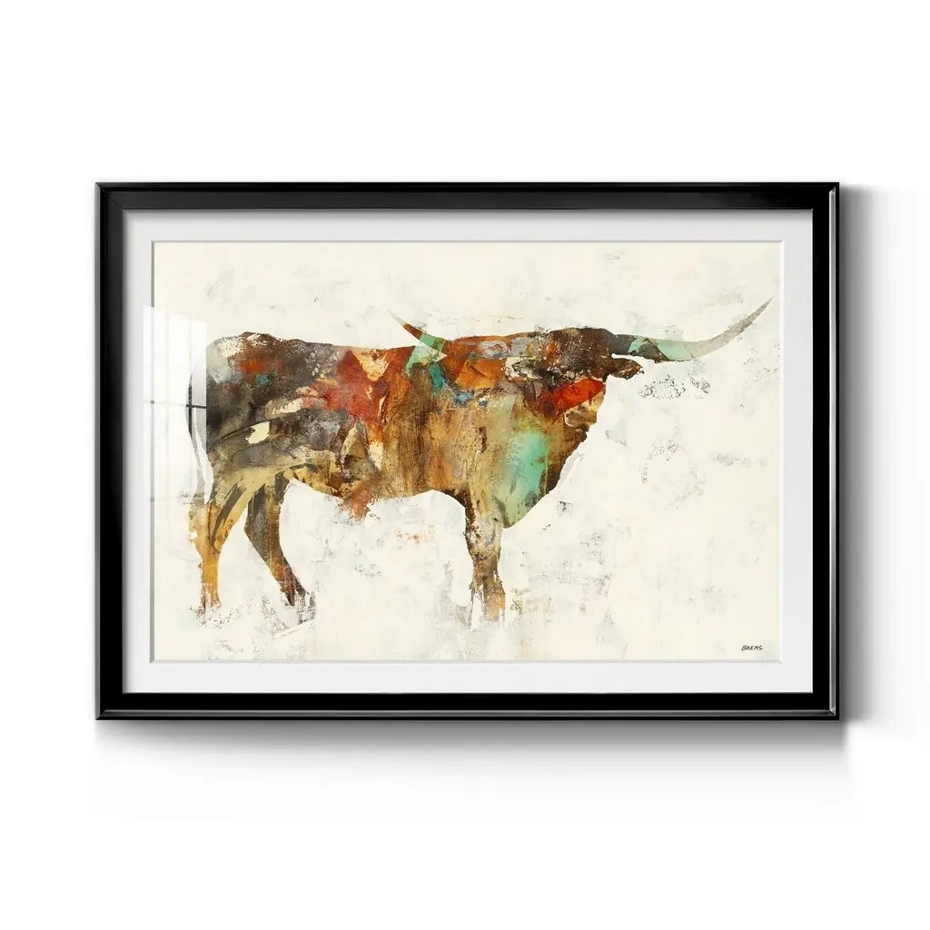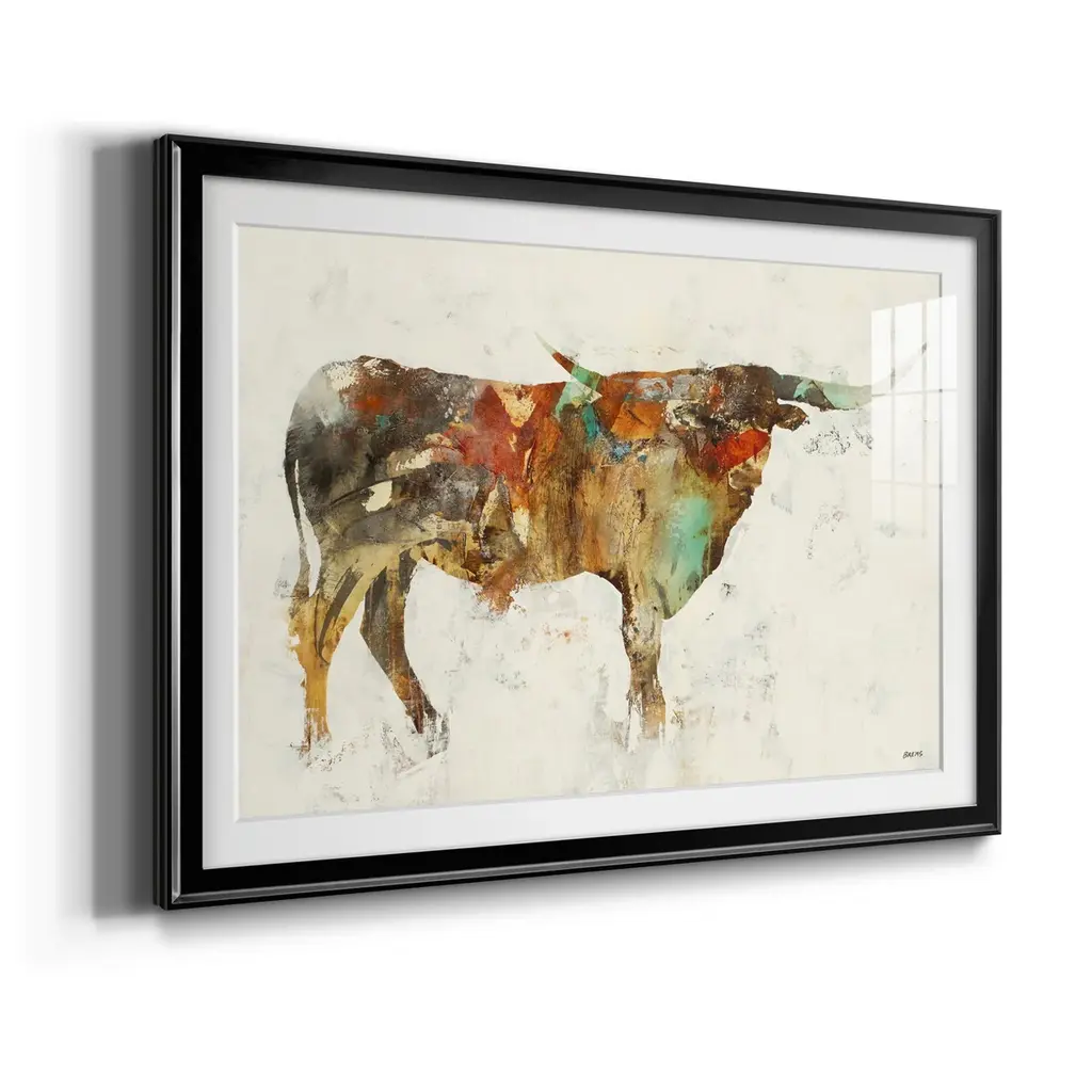 Long Horn Premium Framed Print - Ready to Hang A Premium Framed Print created to last. Framed in distressed wood and available in an array of sizes and colors Featuring a beveled a solid wood stretcher bar, each piece comes ready to hand 4 SIZES AVAILABLE 30.5''X42.5'' - Overall Size 26.5'X36.5'' - Overall Size 22''x30'' - Overall Size 18''x24'' - Overall Size Each piece is made to order. Each piece comes with hanging hardware. Made in the USA Ready to Hang Giclee Paper Print Acrylic Glass Beveled Matt Board