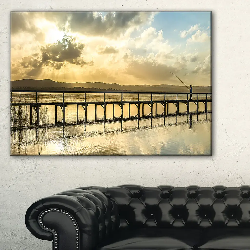 "Long Jetty Foreshore Reserve Panorama" Sea Bridge Canvas Wall Artwork, 40"x30"