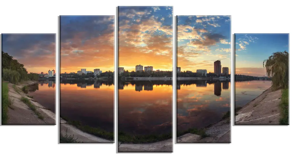 "Long Summer Sunset In Yellow" Canvas Print, 4 Panels, 48"x28"