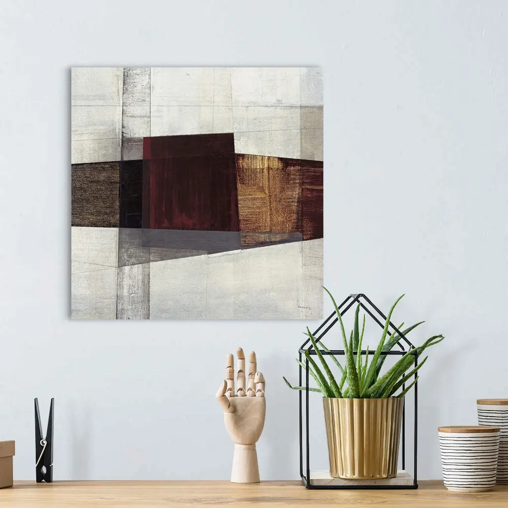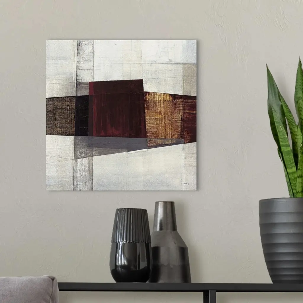 Sharp angles and rigid shapes give this abstract painting a sense of depth and life.