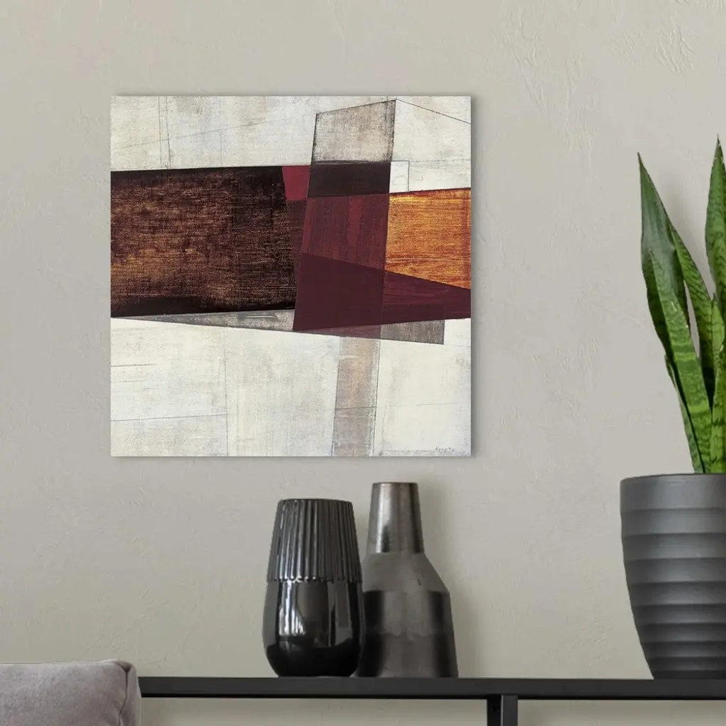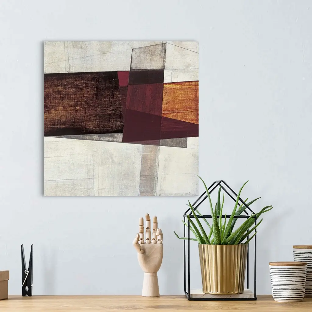 Sharp angles and rigid shapes give this abstract painting a sense of depth and life.