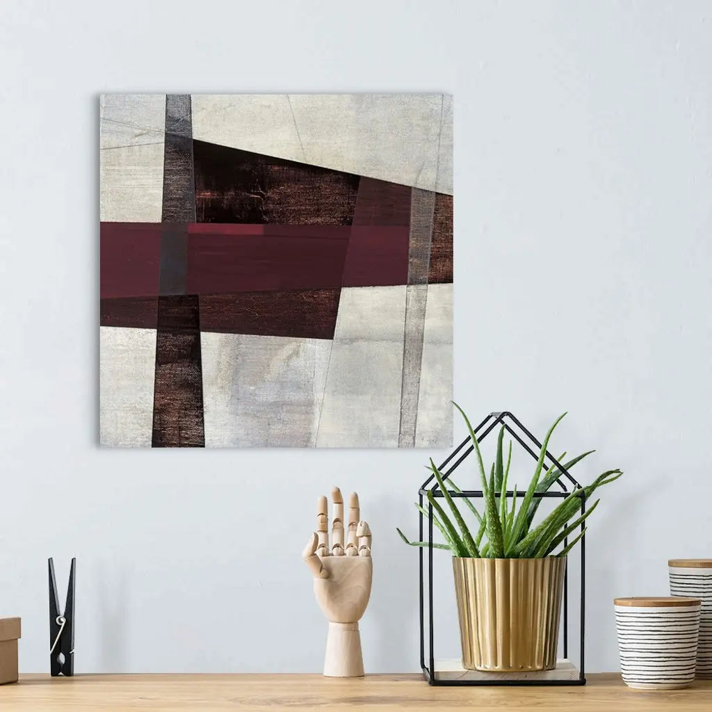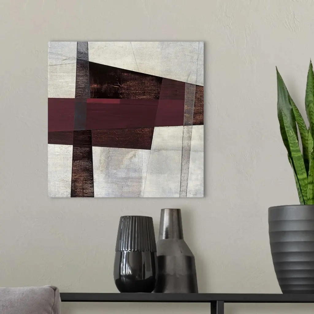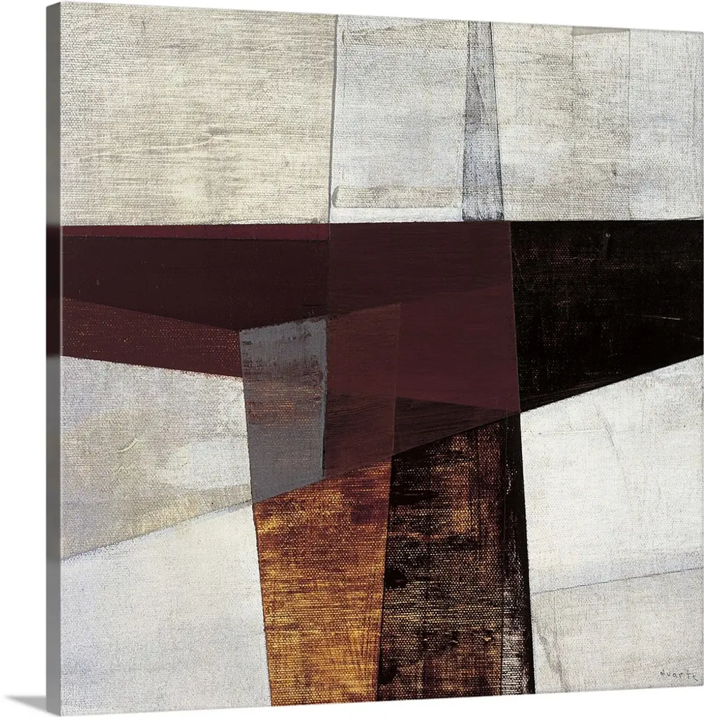 Sharp angles and rigid shapes give this abstract painting a sense of depth and life.