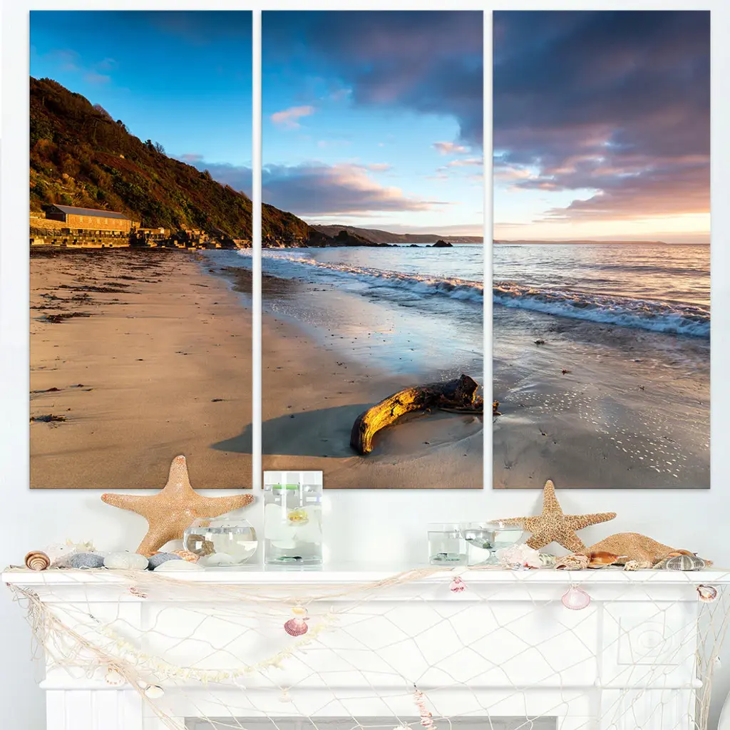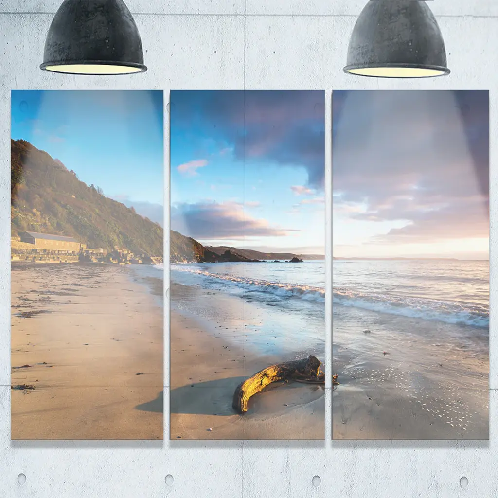 "Looe Cornwall Beach At Sunrise" Beach Metal Wall Art, 3 Panels, 36"x28"