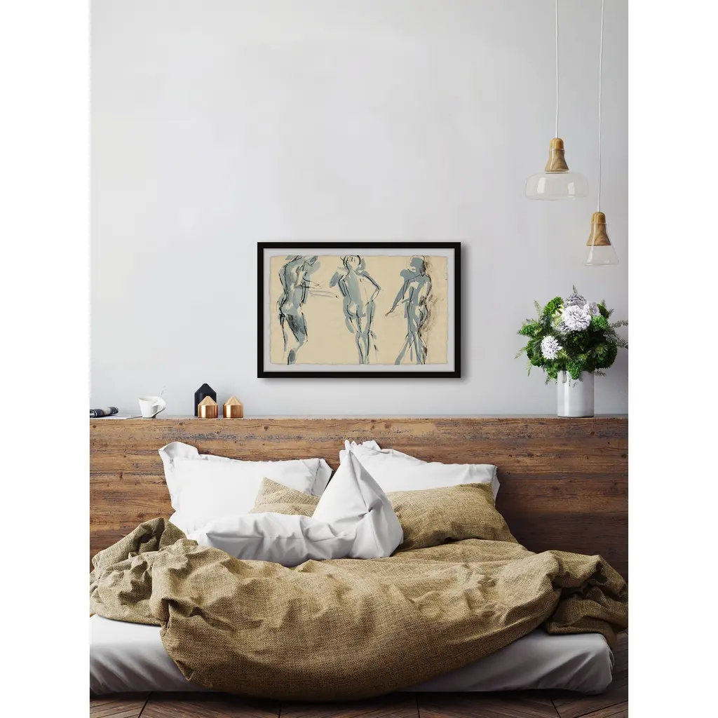 This sensual watercolor painting print features three nude bodies drawn with astounding detail. Proudly printed in the USA, this piece is printed on high quality archive paper and professionally hand-framed. With wall-mounting hooks included, this artful accent is ready to hang up as soon as it reaches your front door. • Top quality Giclee print on high resolution Archive Paper • Hand cut deckled edges • High quality durable non-warping frame • Finished under shatter resistant plexiglass • Arrives ready to hang • Includes a certificate of authenticity • Printed in the USA