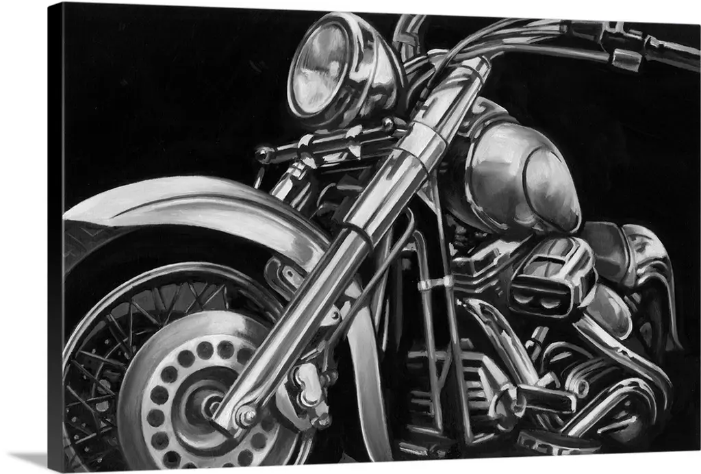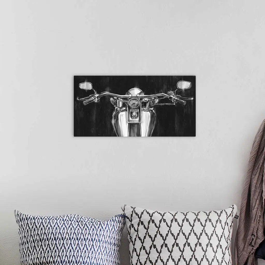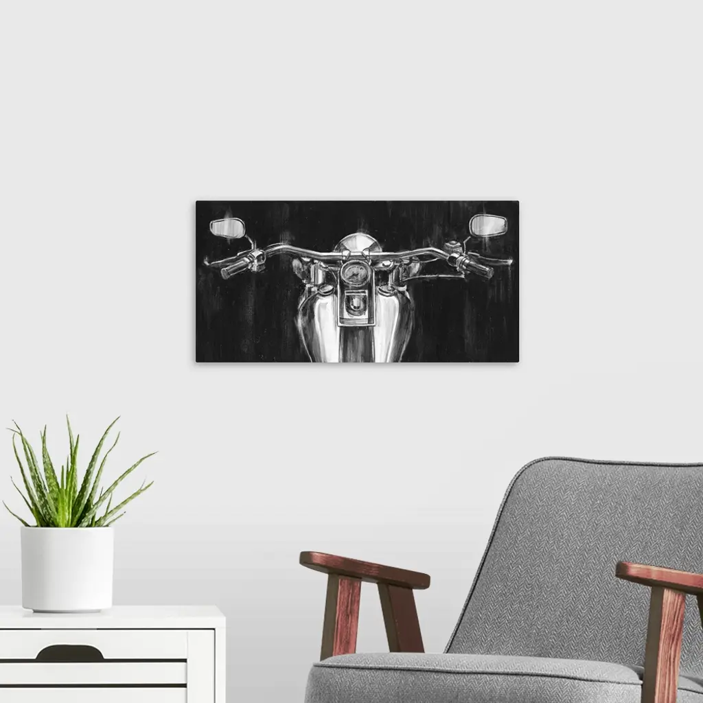 Contemporary painting of a motorcycle's handlebars.