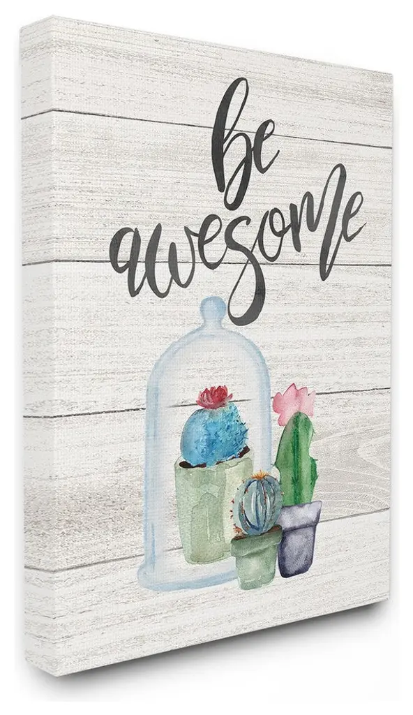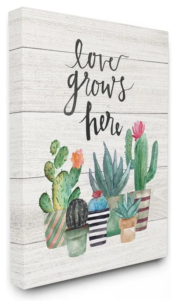 Looking Sharp Cactus Succulent Watercolor Stretched Canvas Wall Art, 16"x20"
