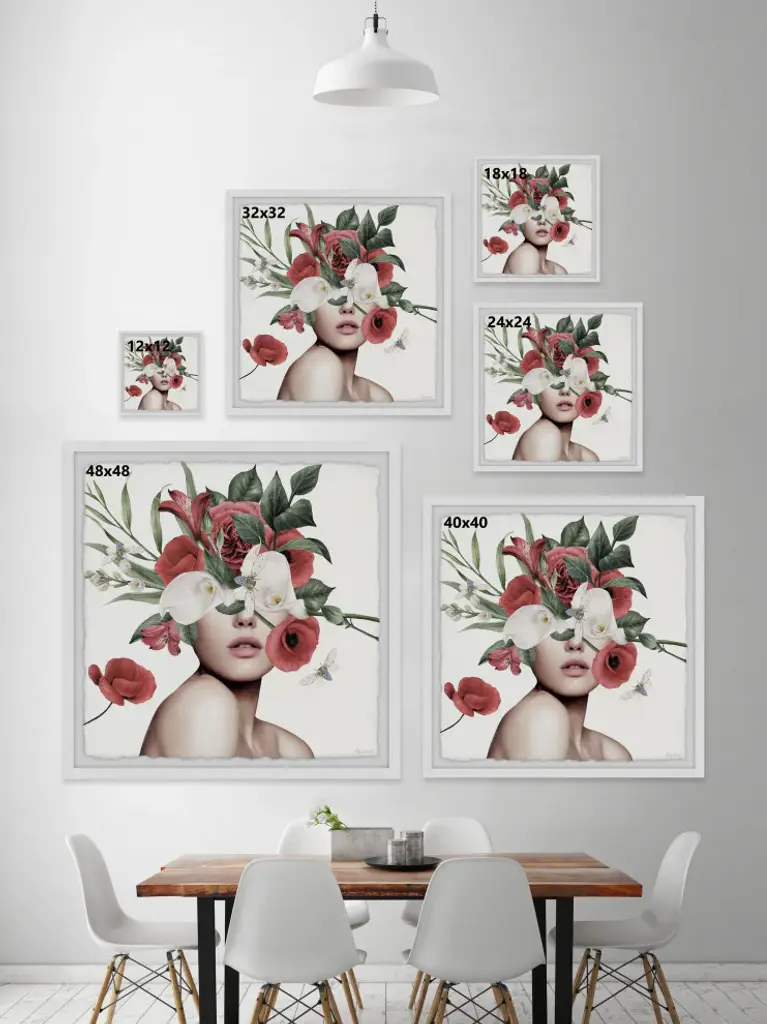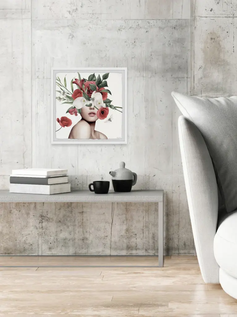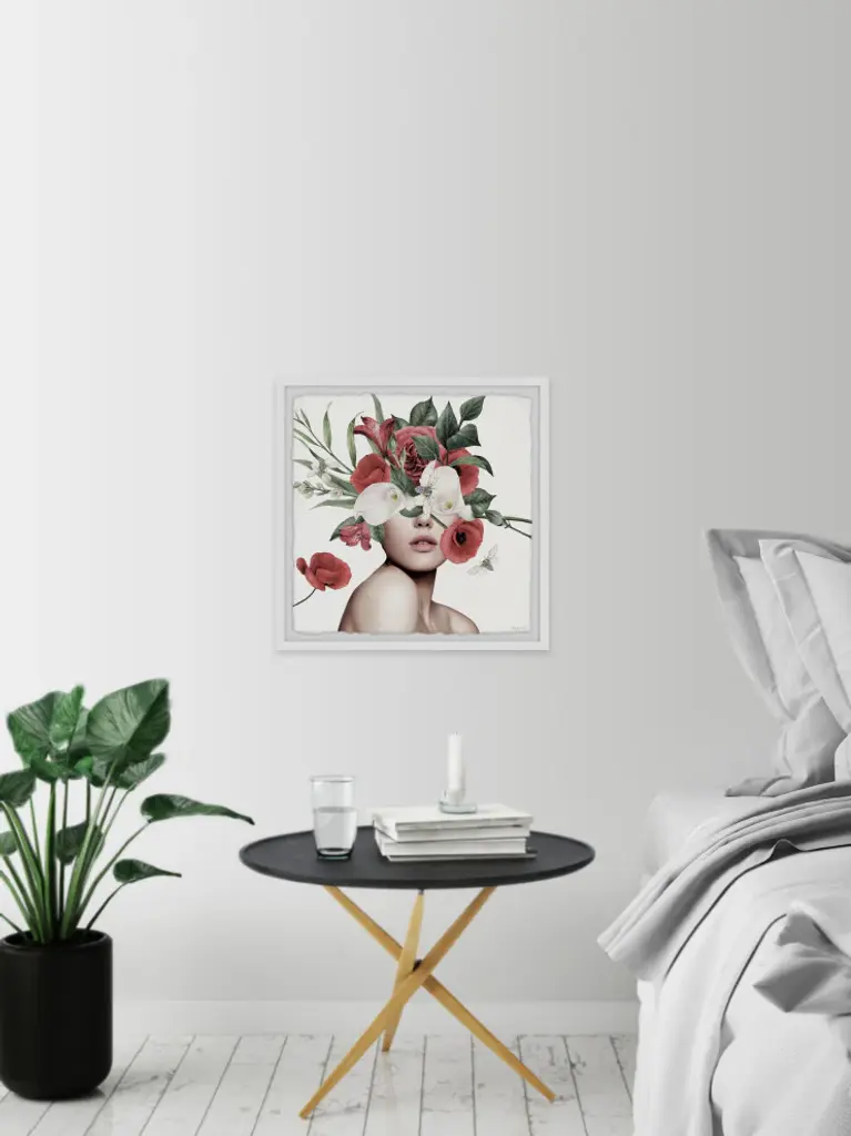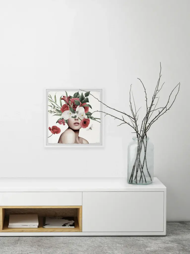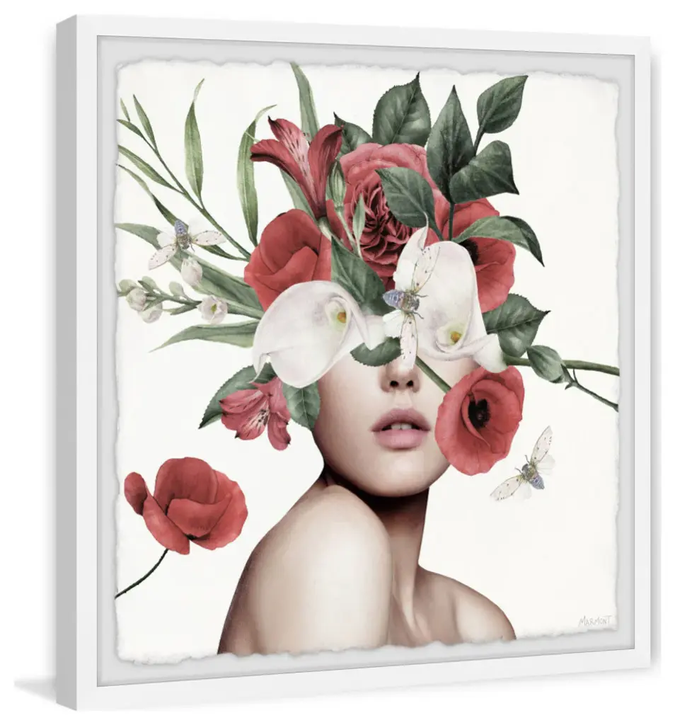 Bring seasonal hues into your living space with this photographic print that features a woman whose face is being taken over by red and white flowers. Proudly printed in the USA, this piece is printed on high quality archive paper and professionally hand-framed. With wall-mounting hooks included, this artful accent is ready to hang up as soon as it reaches your front door.Top quality Giclee print on high resolution Archive PaperHand cut deckled edgesHigh quality durable non-warping frameFinished under shatter resistant plexiglassArrives ready to hangIncludes a certificate of authenticityPrinted in the USA