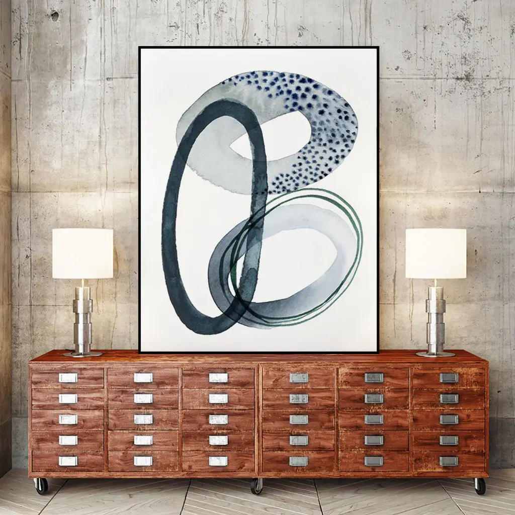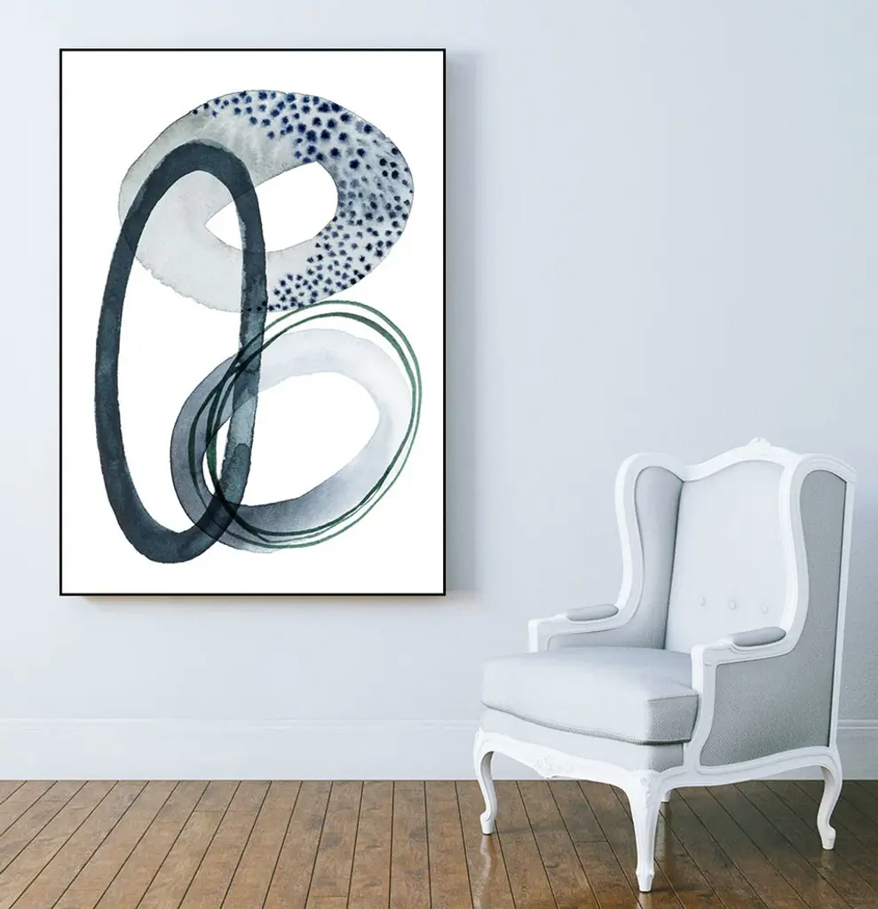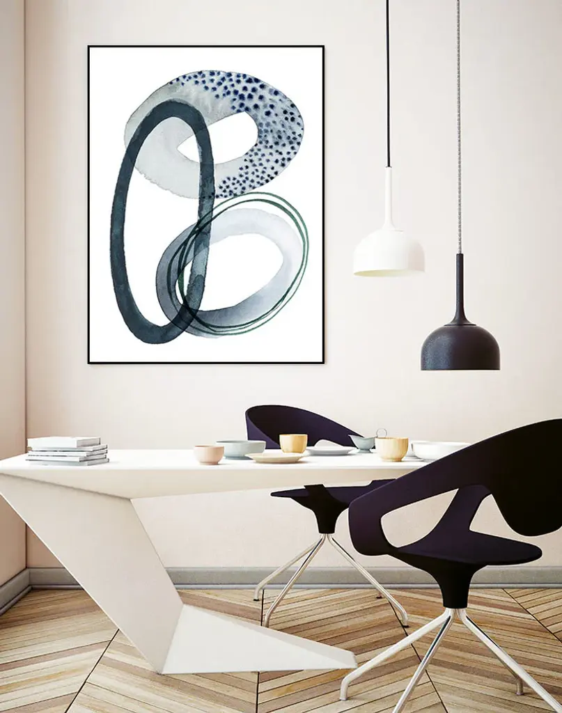 Your ready-to-hang artwork is printed on canvas then stretched and mounted to a 2 inch-thick, hand-stained black wood frame. Arrives at your door complete with an easy-to-use self-leveling hanging kit.
