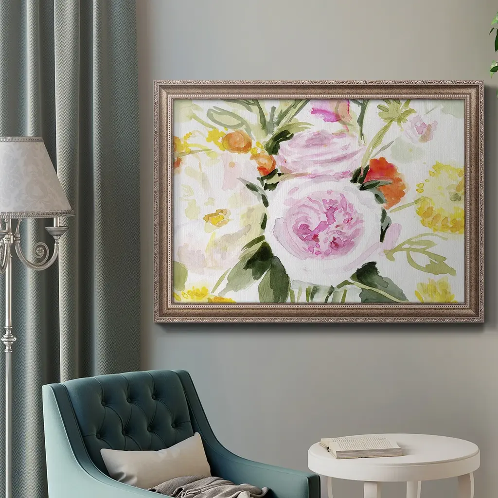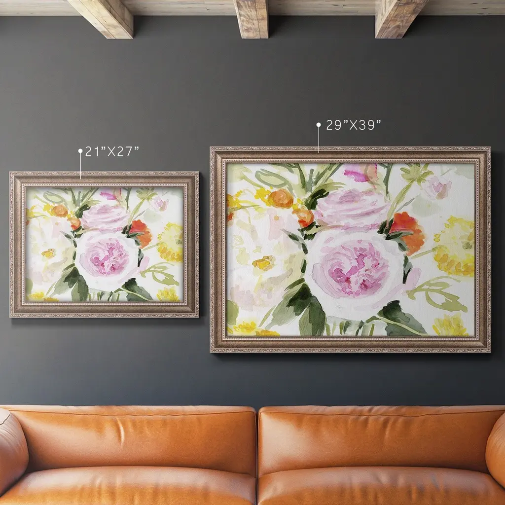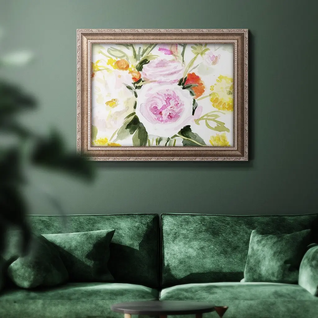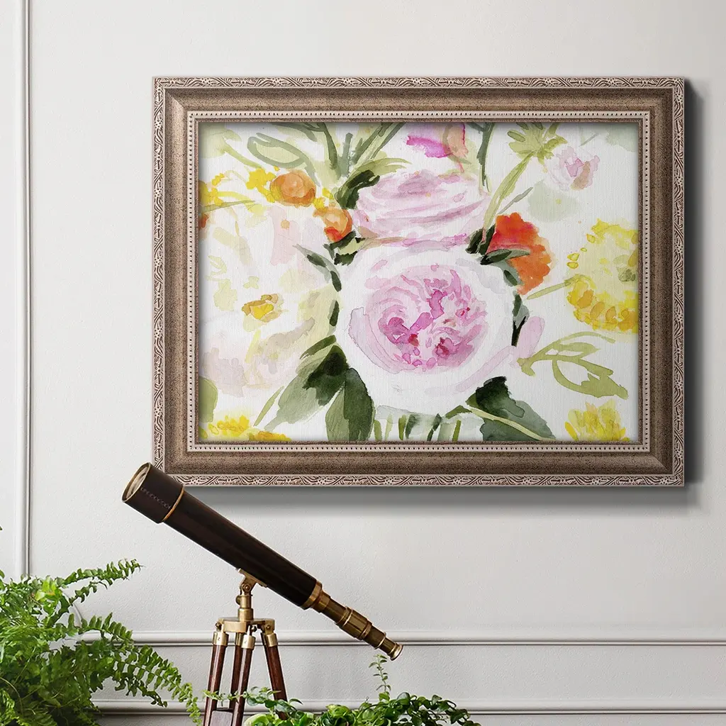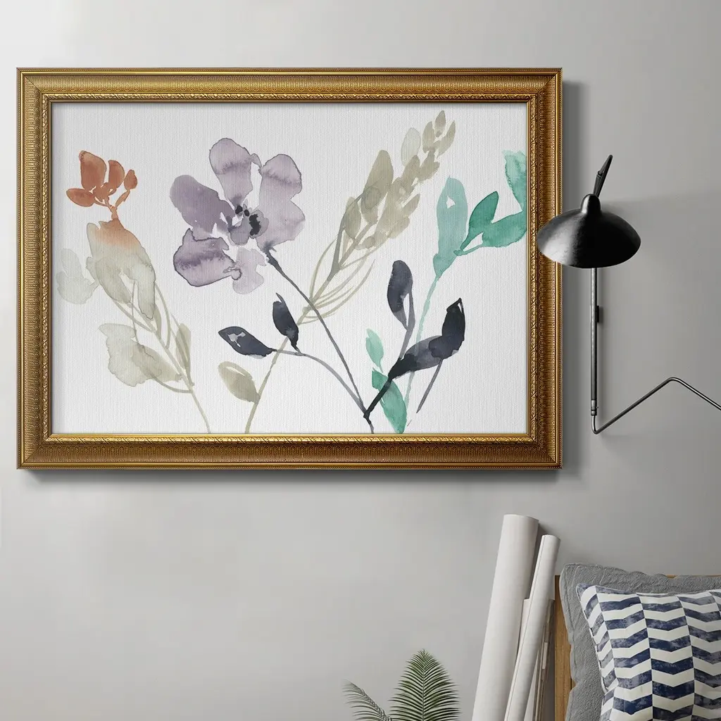 Loose Arrangement III Premium Framed Canvas- Ready to Hang A Premium Framed Canvas created to last. Framed in distressed wood and available in an array of sizes and colors Featuring a beveled a solid wood stretcher bar, each piece comes ready to hand 3 SIZES AVAILABLE 16''X20'' - Overall Size 18'X27'' - Overall Size 24''x36'' - Overall Size Each piece is made to order. Each piece comes with hanging hardware. Made in the USA Ready to Hang Giclee Paper Print Acrylic Glass Beveled Matt Board