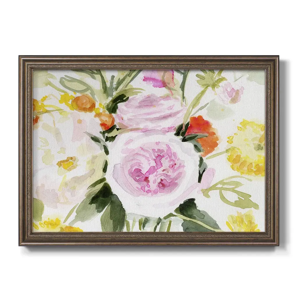 Loose Arrangement III Premium Framed Canvas- Ready to Hang A Premium Framed Canvas created to last. Framed in distressed wood and available in an array of sizes and colors Featuring a beveled a solid wood stretcher bar, each piece comes ready to hand 3 SIZES AVAILABLE 16''X20'' - Overall Size 18'X27'' - Overall Size 24''x36'' - Overall Size Each piece is made to order. Each piece comes with hanging hardware. Made in the USA Ready to Hang Giclee Paper Print Acrylic Glass Beveled Matt Board