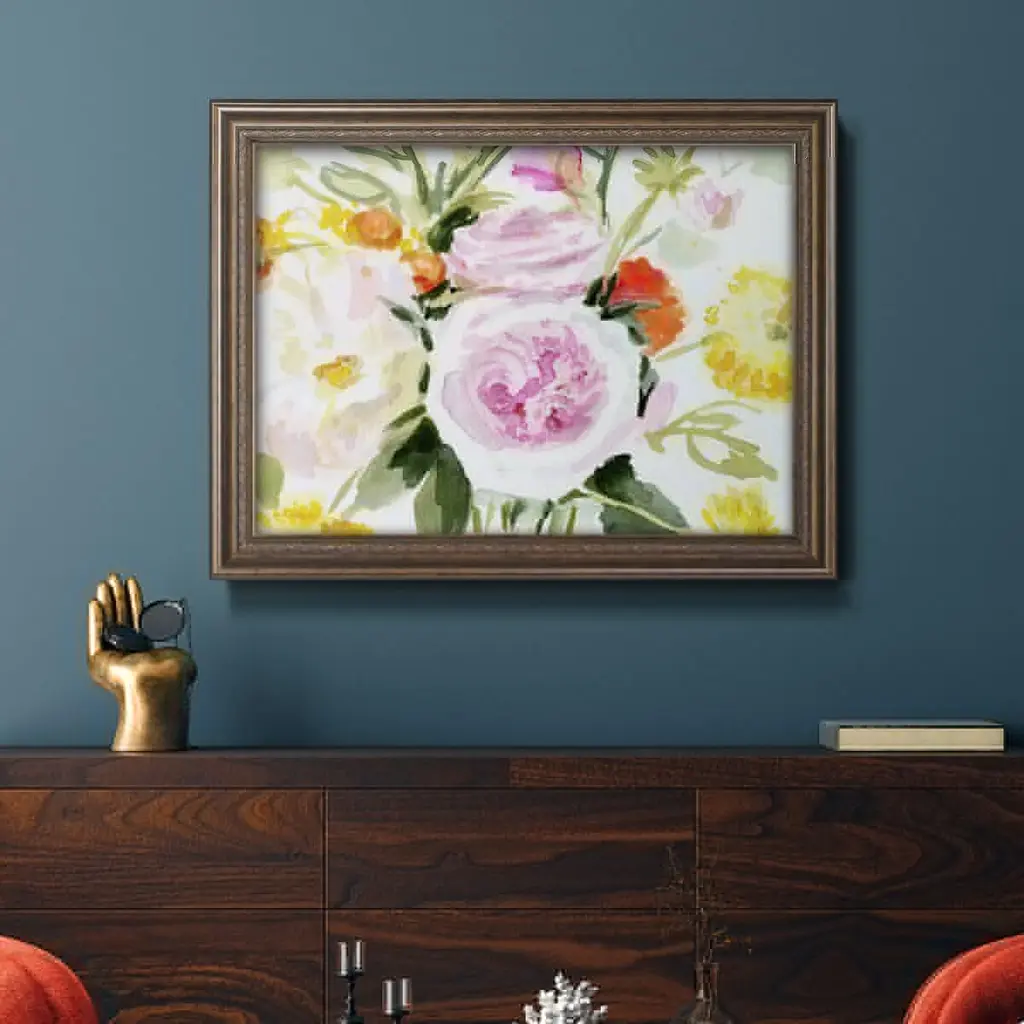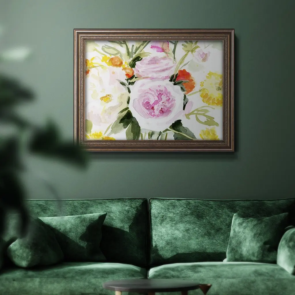 Loose Arrangement III Premium Framed Canvas- Ready to Hang A Premium Framed Canvas created to last. Framed in distressed wood and available in an array of sizes and colors Featuring a beveled a solid wood stretcher bar, each piece comes ready to hand 3 SIZES AVAILABLE 16''X20'' - Overall Size 18'X27'' - Overall Size 24''x36'' - Overall Size Each piece is made to order. Each piece comes with hanging hardware. Made in the USA Ready to Hang Giclee Paper Print Acrylic Glass Beveled Matt Board