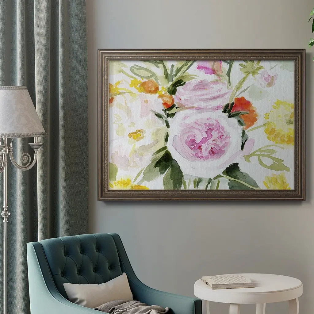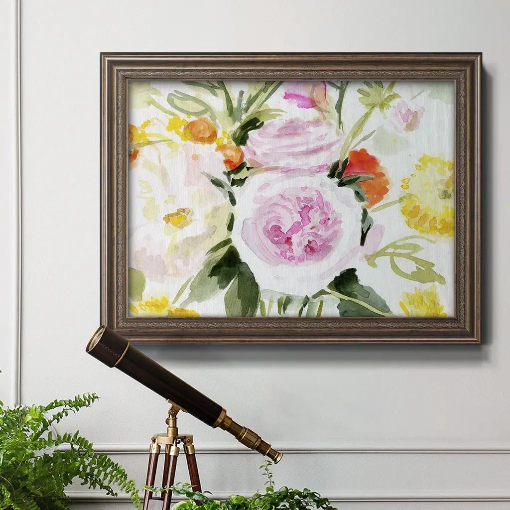 Loose Arrangement III Premium Framed Canvas- Ready to Hang A Premium Framed Canvas created to last. Framed in distressed wood and available in an array of sizes and colors Featuring a beveled a solid wood stretcher bar, each piece comes ready to hand 3 SIZES AVAILABLE 16''X20'' - Overall Size 18'X27'' - Overall Size 24''x36'' - Overall Size Each piece is made to order. Each piece comes with hanging hardware. Made in the USA Ready to Hang Giclee Paper Print Acrylic Glass Beveled Matt Board