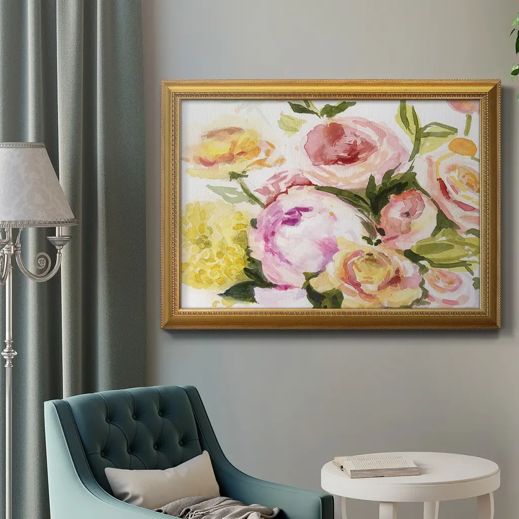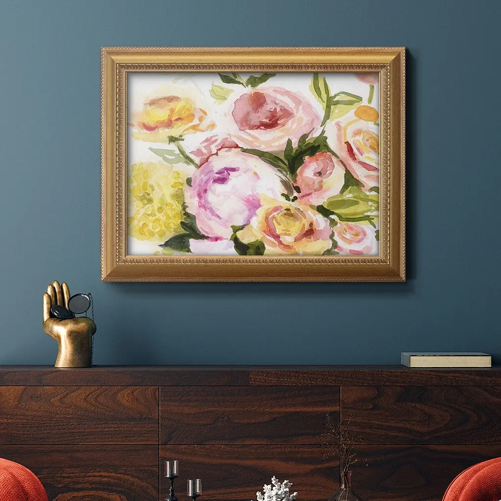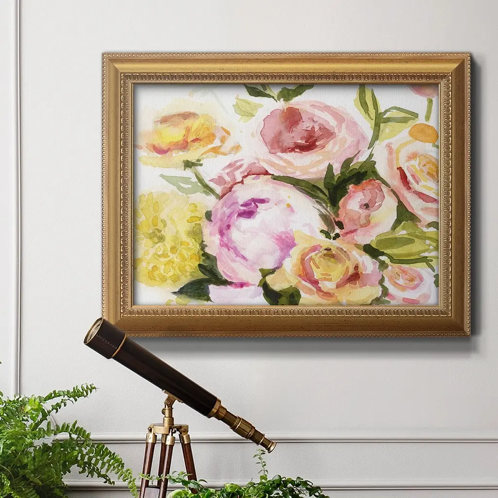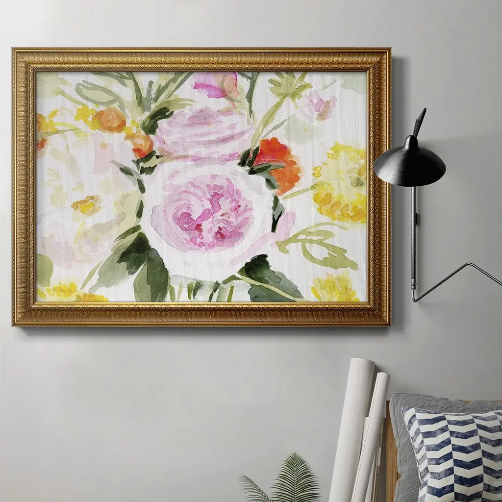 Loose Arrangement IV Premium Framed Canvas- Ready to Hang A Premium Framed Canvas created to last. Framed in distressed wood and available in an array of sizes and colors Featuring a beveled a solid wood stretcher bar, each piece comes ready to hand 3 SIZES AVAILABLE 16''X20'' - Overall Size 18'X27'' - Overall Size 24''x36'' - Overall Size Each piece is made to order. Each piece comes with hanging hardware. Made in the USA Ready to Hang Giclee Paper Print Acrylic Glass Beveled Matt Board