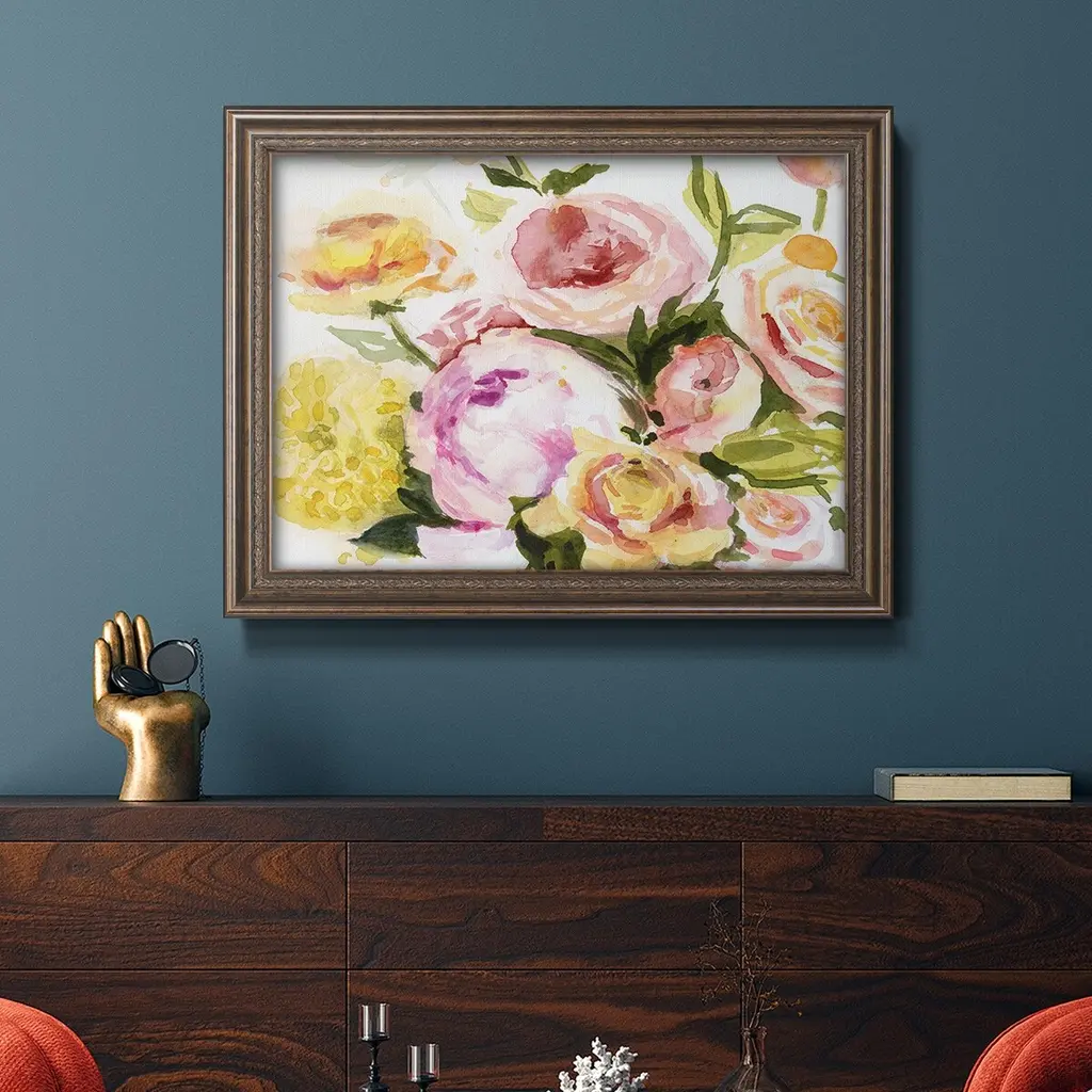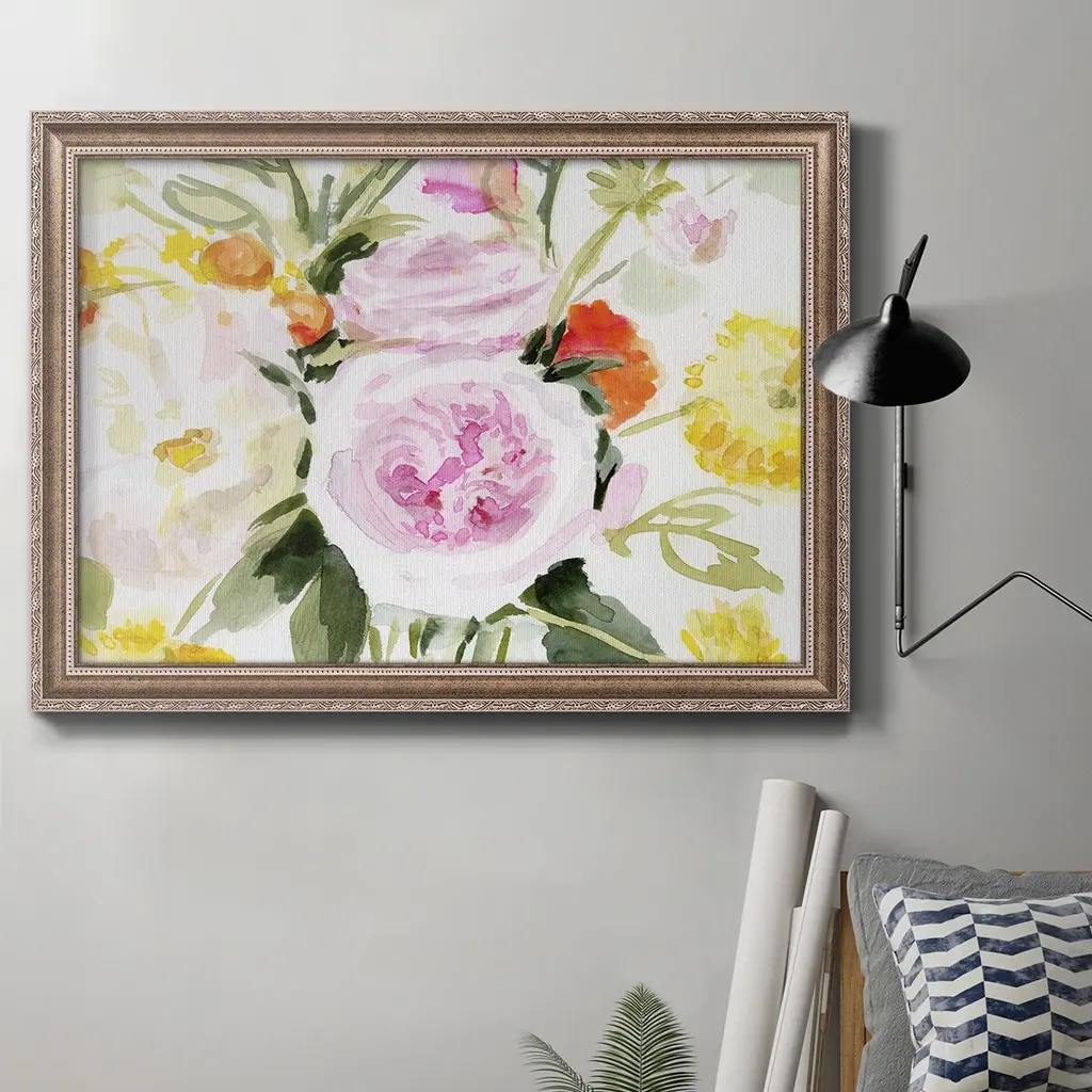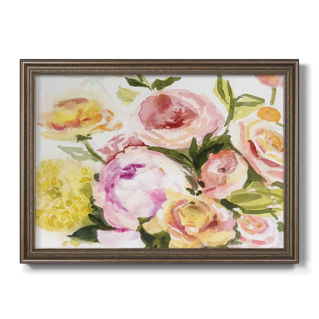 Loose Arrangement IV Premium Framed Canvas- Ready to Hang A Premium Framed Canvas created to last. Framed in distressed wood and available in an array of sizes and colors Featuring a beveled a solid wood stretcher bar, each piece comes ready to hand 3 SIZES AVAILABLE 16''X20'' - Overall Size 18'X27'' - Overall Size 24''x36'' - Overall Size Each piece is made to order. Each piece comes with hanging hardware. Made in the USA Ready to Hang Giclee Paper Print Acrylic Glass Beveled Matt Board