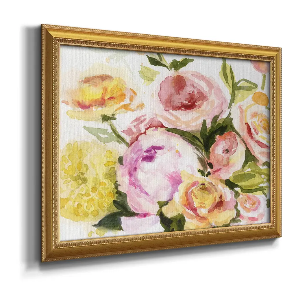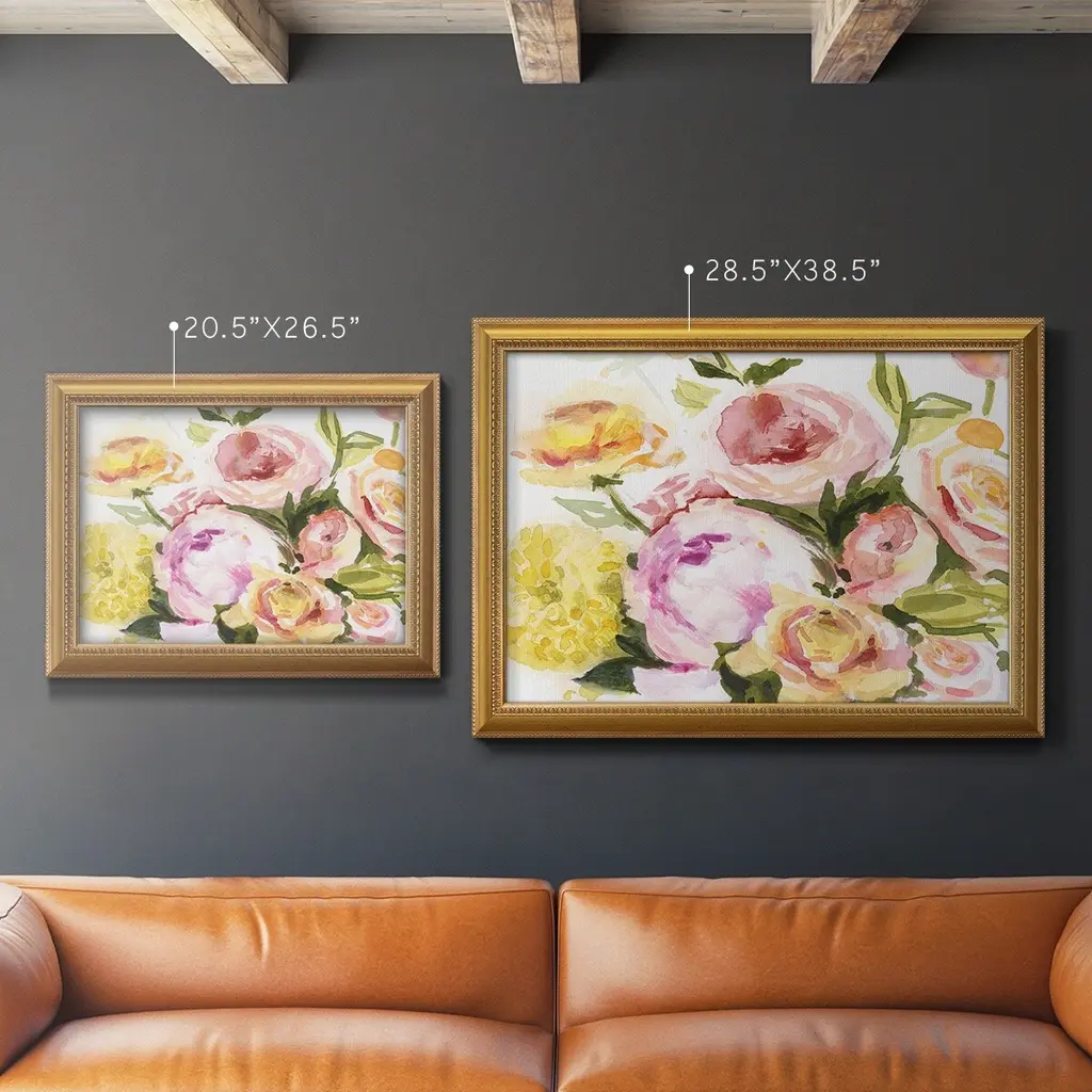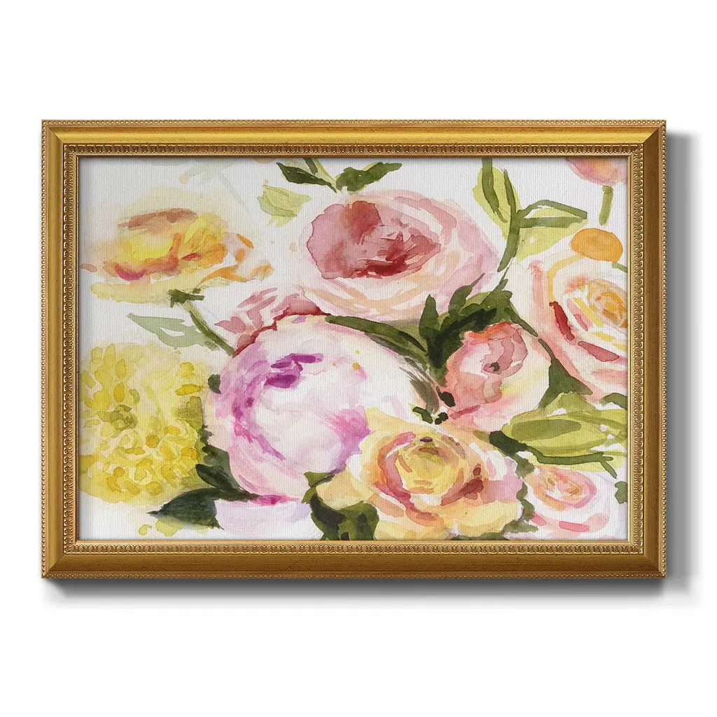 Loose Arrangement IV Premium Framed Canvas- Ready to Hang A Premium Framed Canvas created to last. Framed in distressed wood and available in an array of sizes and colors Featuring a beveled a solid wood stretcher bar, each piece comes ready to hand 3 SIZES AVAILABLE 16''X20'' - Overall Size 18'X27'' - Overall Size 24''x36'' - Overall Size Each piece is made to order. Each piece comes with hanging hardware. Made in the USA Ready to Hang Giclee Paper Print Acrylic Glass Beveled Matt Board
