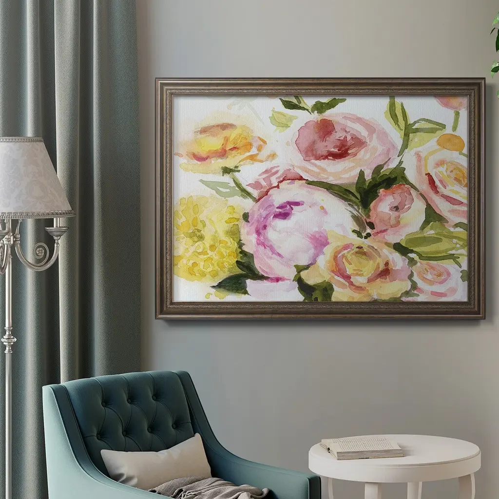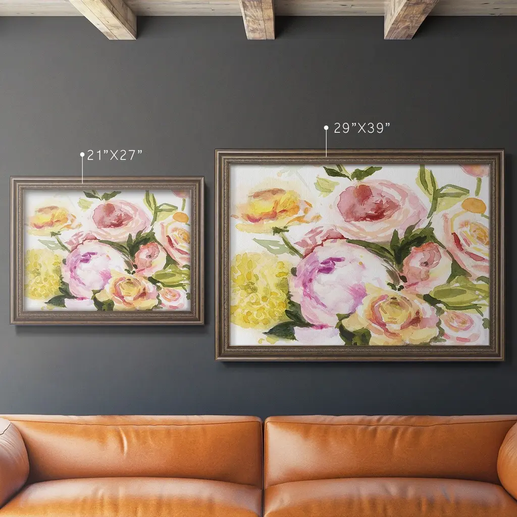 Loose Arrangement IV Premium Framed Canvas- Ready to Hang A Premium Framed Canvas created to last. Framed in distressed wood and available in an array of sizes and colors Featuring a beveled a solid wood stretcher bar, each piece comes ready to hand 3 SIZES AVAILABLE 16''X20'' - Overall Size 18'X27'' - Overall Size 24''x36'' - Overall Size Each piece is made to order. Each piece comes with hanging hardware. Made in the USA Ready to Hang Giclee Paper Print Acrylic Glass Beveled Matt Board