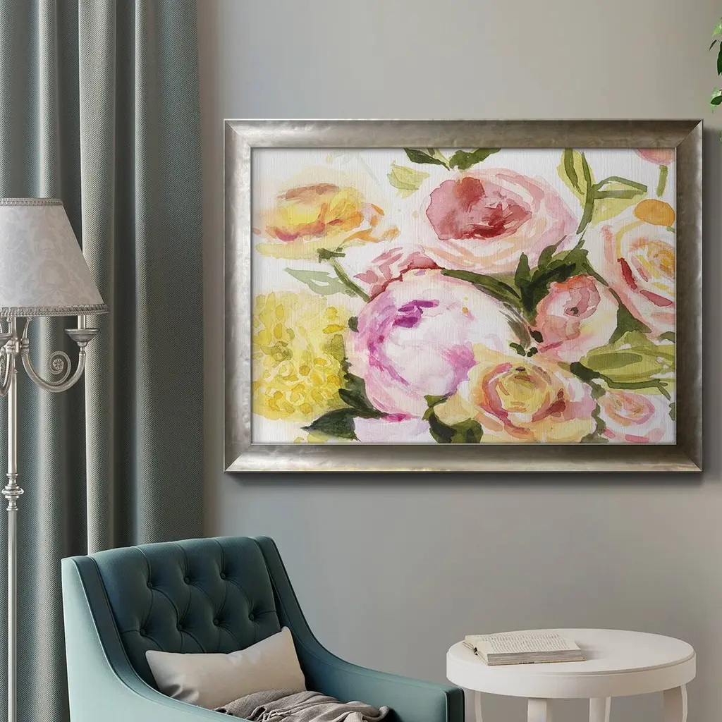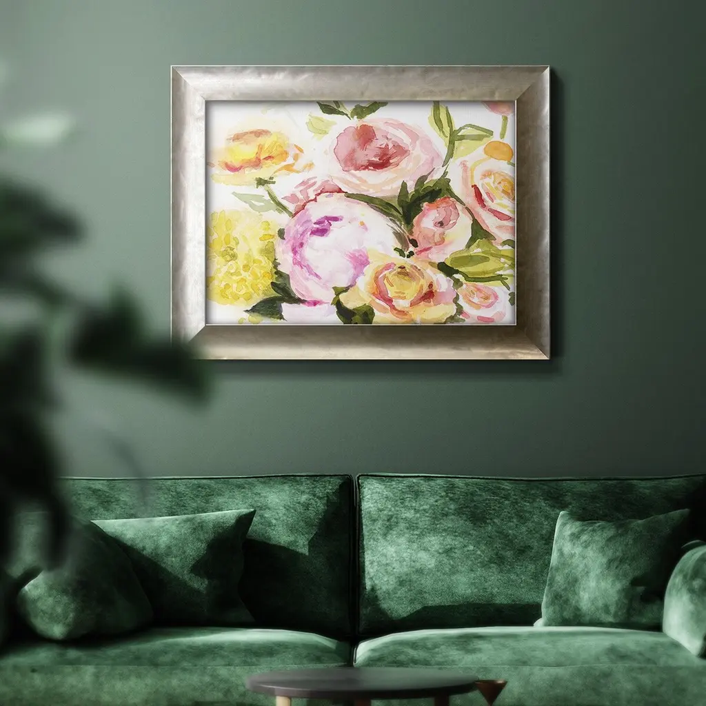 Loose Arrangement IV Premium Framed Canvas- Ready to Hang A Premium Framed Canvas created to last. Framed in distressed wood and available in an array of sizes and colors Featuring a beveled a solid wood stretcher bar, each piece comes ready to hand 3 SIZES AVAILABLE 16''X20'' - Overall Size 18'X27'' - Overall Size 24''x36'' - Overall Size Each piece is made to order. Each piece comes with hanging hardware. Made in the USA Ready to Hang Giclee Paper Print Acrylic Glass Beveled Matt Board