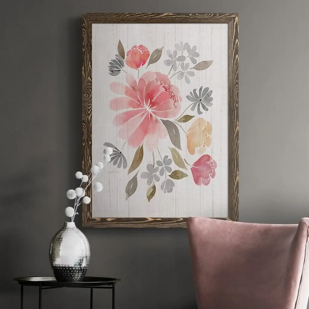 Loose Peonies I-Premium Framed Canvas - Ready To Hang - 27.5x37.5 - Walnut