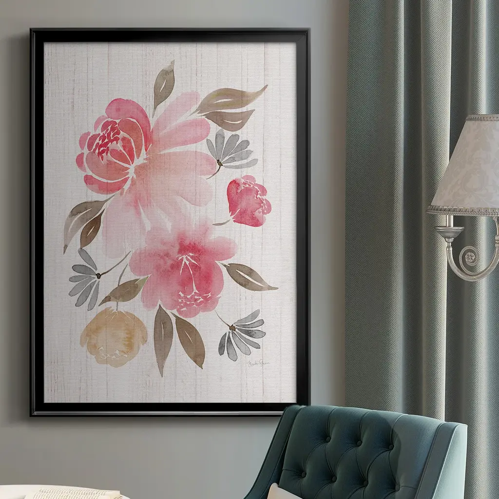 Loose Peonies II Premium Framed Print - Ready to Hang A Premium Framed Print created to last. Framed in distressed wood and available in an array of sizes and colors Featuring a beveled a solid wood stretcher bar, each piece comes ready to hand 4 SIZES AVAILABLE 30.5''X42.5'' - Overall Size 26.5'X36.5'' - Overall Size 22.5''x30.5'' - Overall Size 18.5''x24.5'' - Overall Size Each piece is made to order. Each piece comes with hanging hardware. Made in the USA Ready to Hang