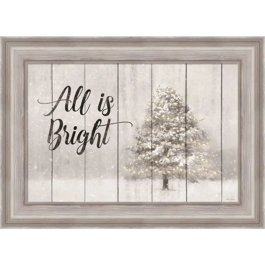 All is Bright by Lori Deiter is a high quality piece of framed artwork. The finished size of this piece is 22" X 16". It has a Weathered White Distressed frame and is finished with high quality Acrylic Plexiglass. 100% Satisfaction Guaranteed.
