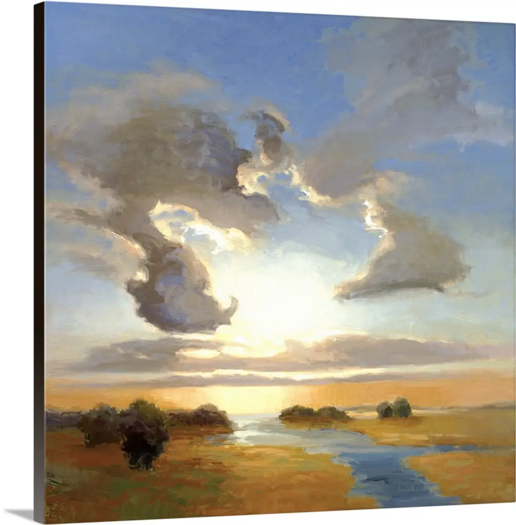 Bayside Sunset III by Lori Deiter is a high quality piece of canvas artwork. The finished size of this piece is 42" X 28", and it has a depth 1.5". There is a UV protective coating over the entire image, and it is ready to hang on your wall with no hardware required. 100% Satisfaction Guaranteed.