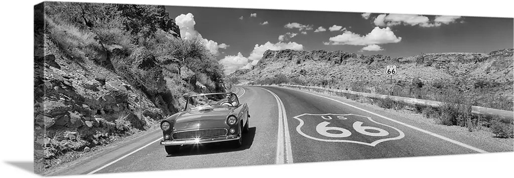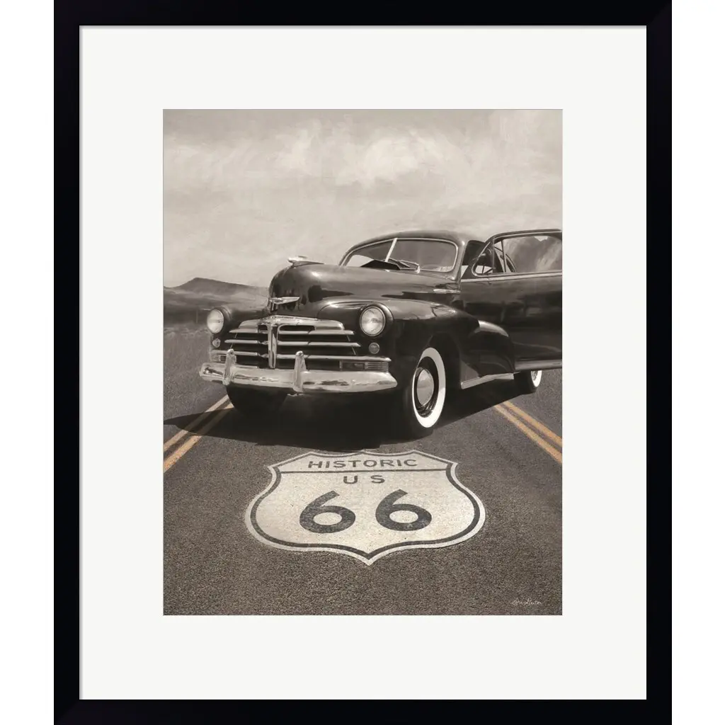 Historic Route 66 by Lori Deiter is a high quality piece of framed artwork. The finished size of this piece is 18" X 21.25". It has a Petite Black with Flat Front frame, is single matted and finished with high quality Acrylic Plexiglass. 100% Satisfaction Guaranteed.