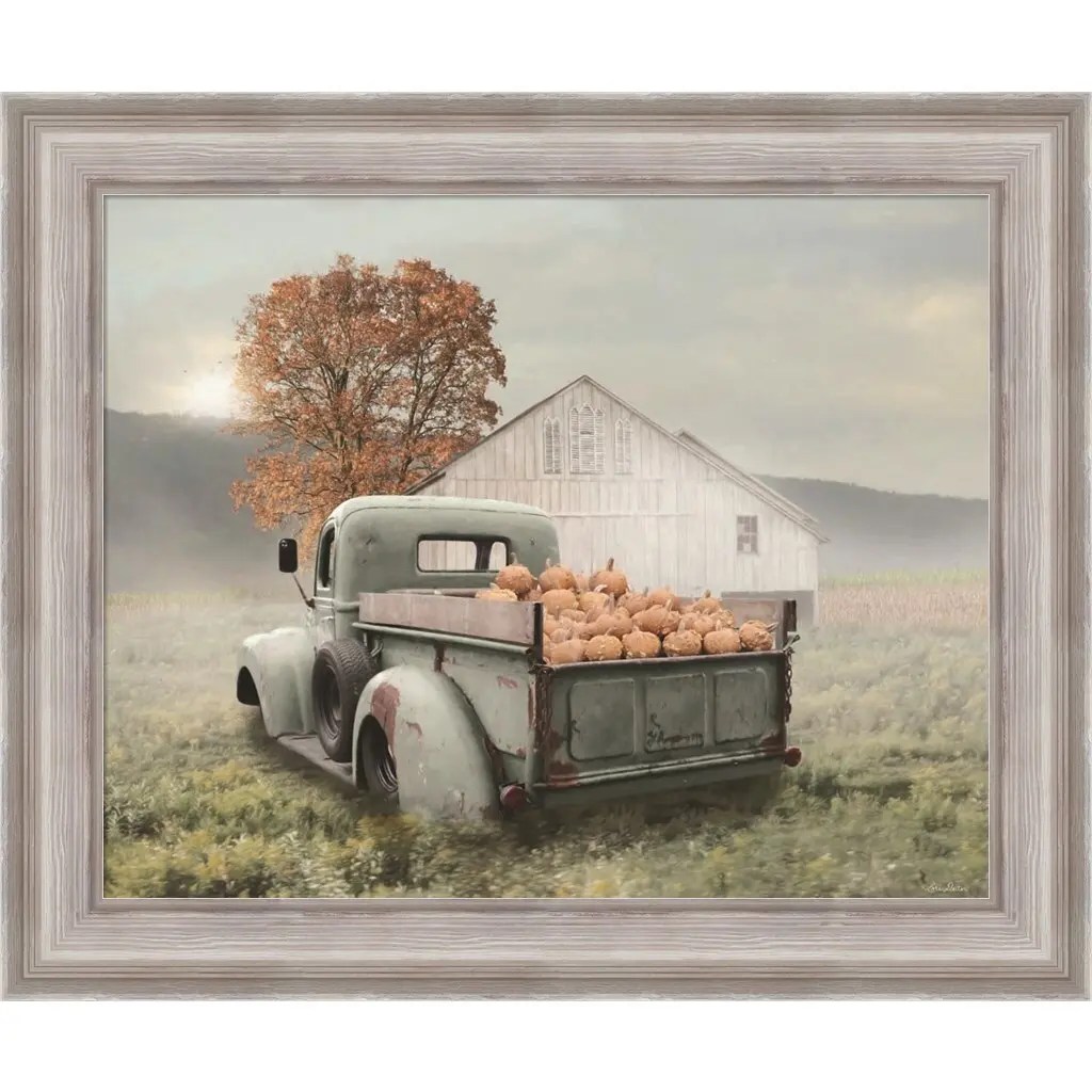 Pumpkin Season by Lori Deiter is a high quality piece of framed artwork. The finished size of this piece is 24" x 20". It has a Weathered White Distressed frame and is finished with high quality Acrylic Plexiglass. 100% Satisfaction Guaranteed.